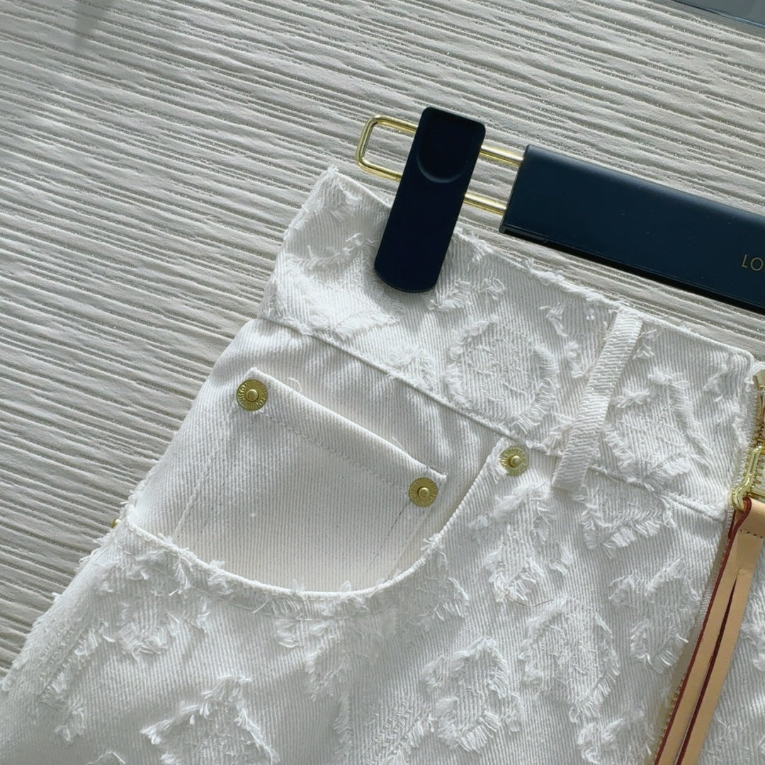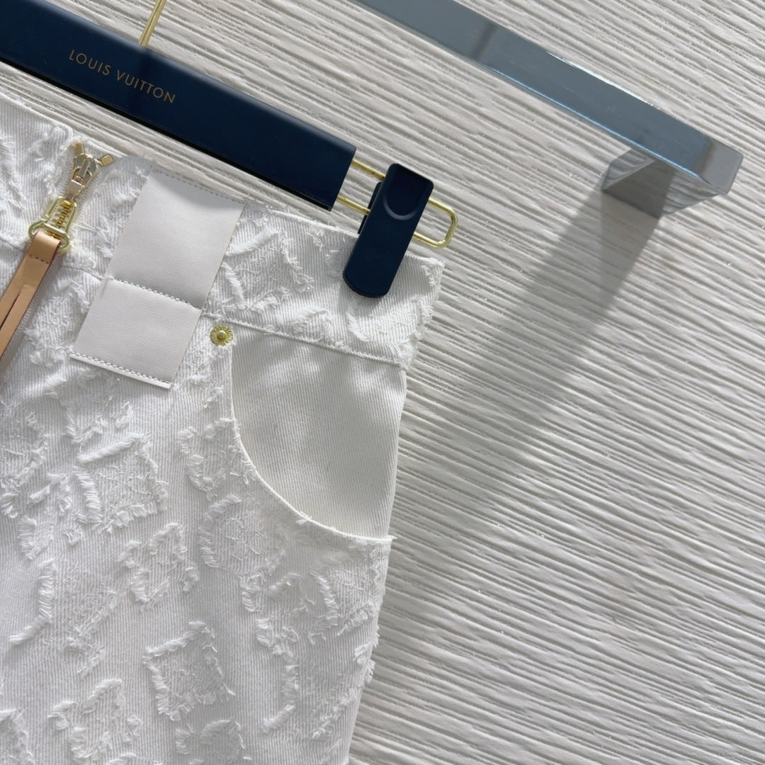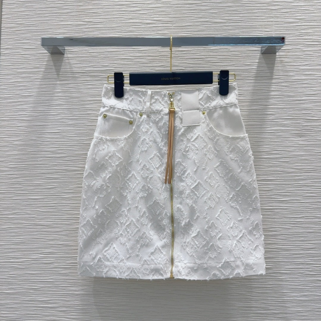 LV 25S Monograw Jacquard Fabric Skirt White Cotton