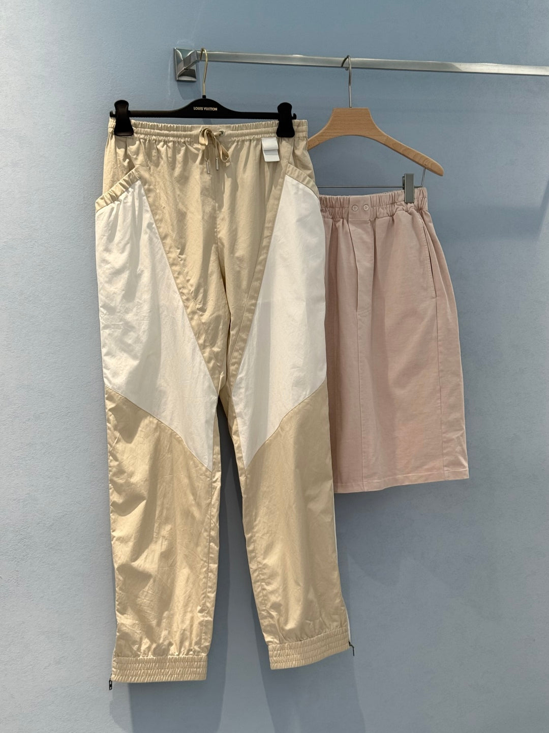 LV Unique Pocket Design Trousers Beige White Cotton