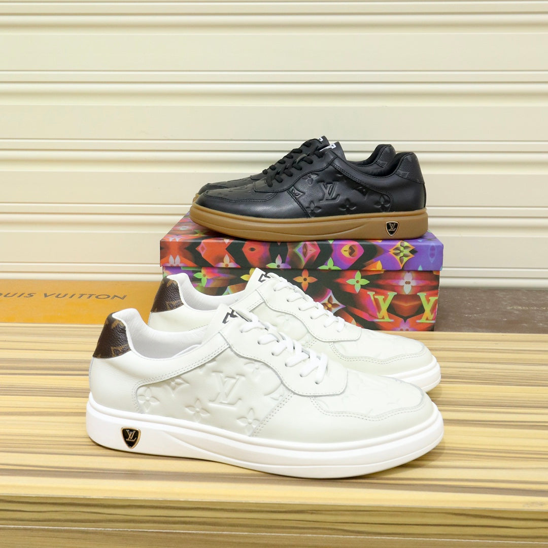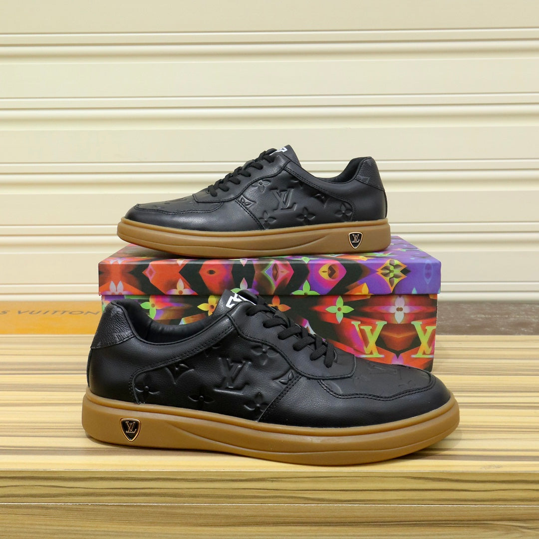 LV TRAINERS IN BLACK CALFSKIN AND BROWN RUBBER