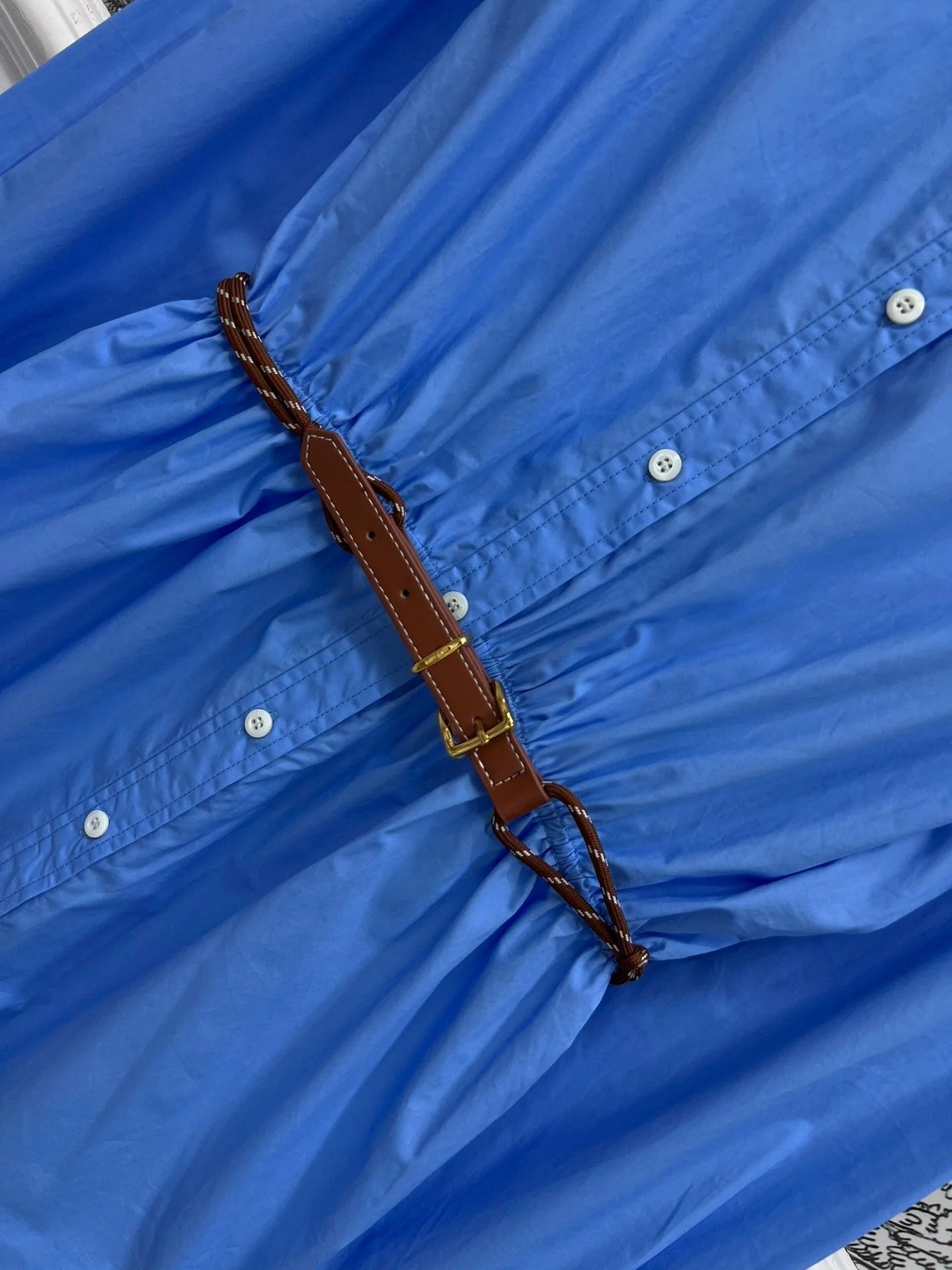 MIUMIU LONG SLEEVE SHIRT DRESS WITH COLLAR AND WAIST TIE 268852