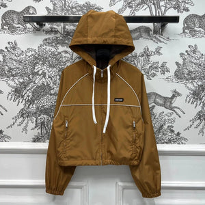 MIU 25S HOODED JACKET BROWN IN NYLON 263023