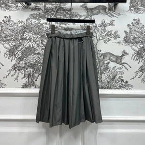 MIU 25S PLEASED SKIRT GREY IN NYLON 263129