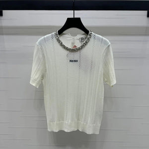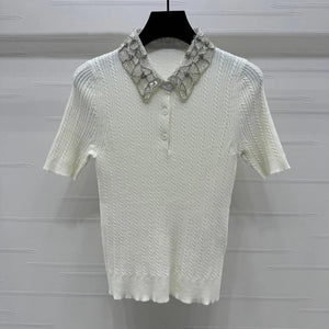 MIU 25S RHINESTONE COLLAR T-SHIRT 264097