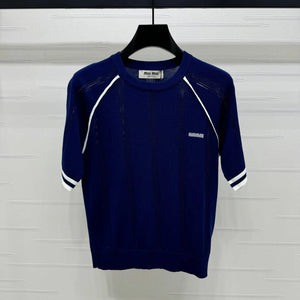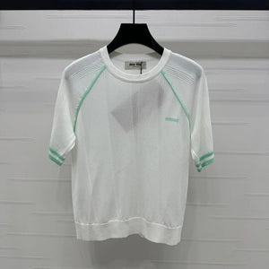MIU 25S ROUND NECK STRIPED KNIT RAGLAN SHORT SLEEVES 264108