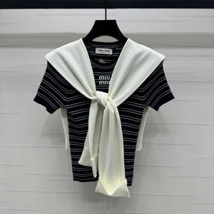 MIU 25S SHORT SLEEVE STRIPED KNITTED CAPE 264138