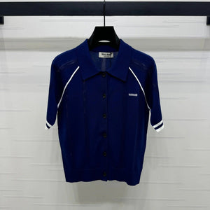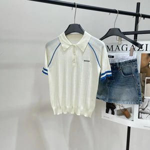 MIUMIU SHORT-SLEEVE RAGLAN POLO SHIRT IN BLUE AND WHITE 267966