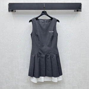 MIU 25S PLEATED VEST DRESS IN ACETATE 264605