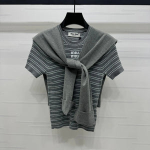 MIU 25S SHORT SLEEVE STRIPED KNITTED CAPE 264139
