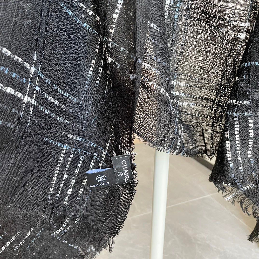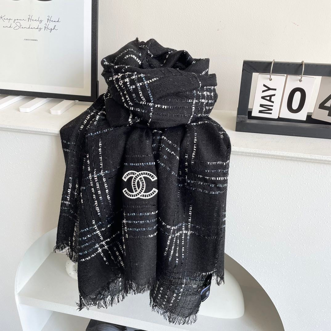 CC Plaid Long Scarf 200cm Black Cashmere 828750