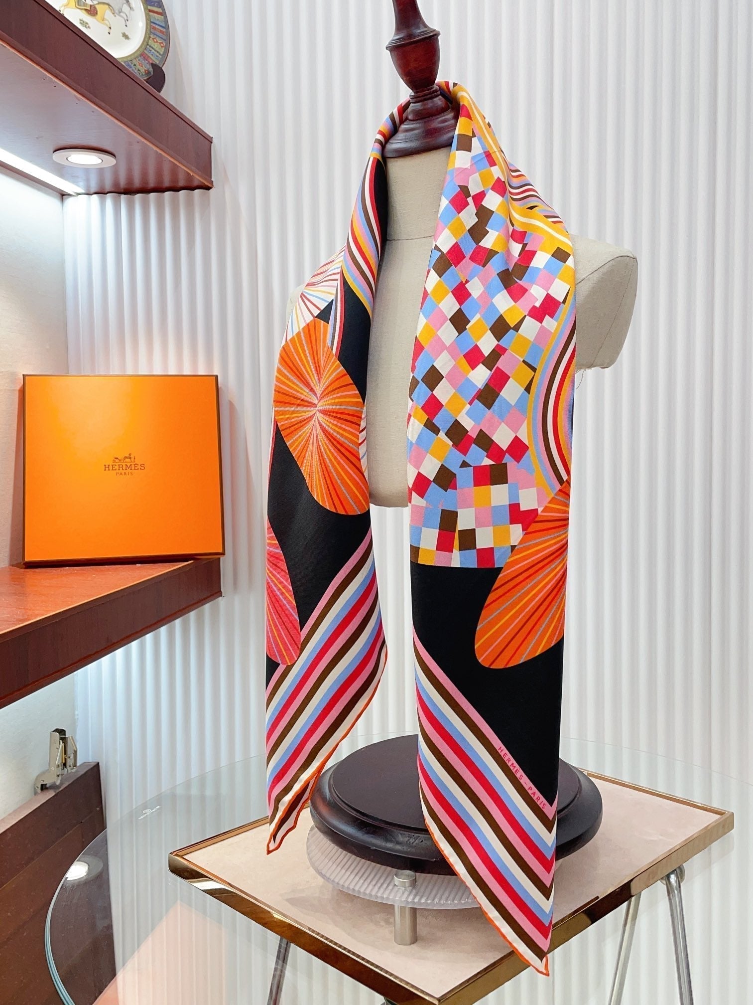 Flores Del Este Scarf 90 CM Black Colorful Silk Twill 310313