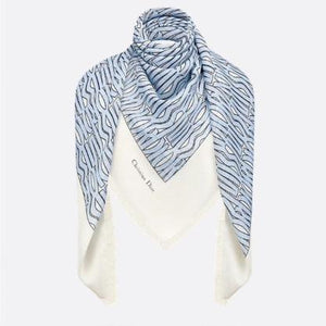 MISS DIOR ALLOVER SHAWL 140 CM IN POWDER BLUE MIX WHITE SILK CASHMERE 411630