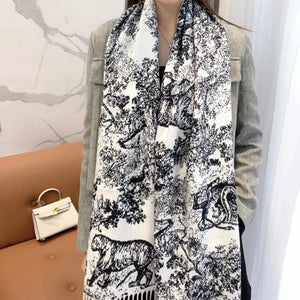 MISS DIOR ALLOVER SHAWL 140 CM IN BLACK MIX WHITE SILK CASHMERE 411629