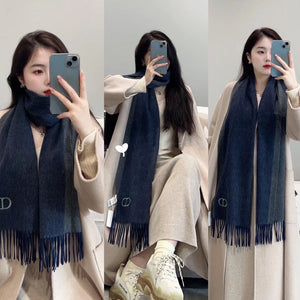 SCARF 180 CM NAVY BLUE WOOL AND CASHMERE 407336