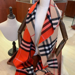 WIDE CHECK CASHMERE SCARF 200 CM IN CAMEL BROWN CASHMERE 407326