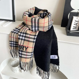CHECK CASHMERE SCARF 168 CM BLACK MIX WHITE 410210