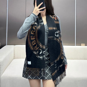 REVERSIBLE CHECK CASHMERE SCARF 180 CM BLACK AND BEIGE 405497
