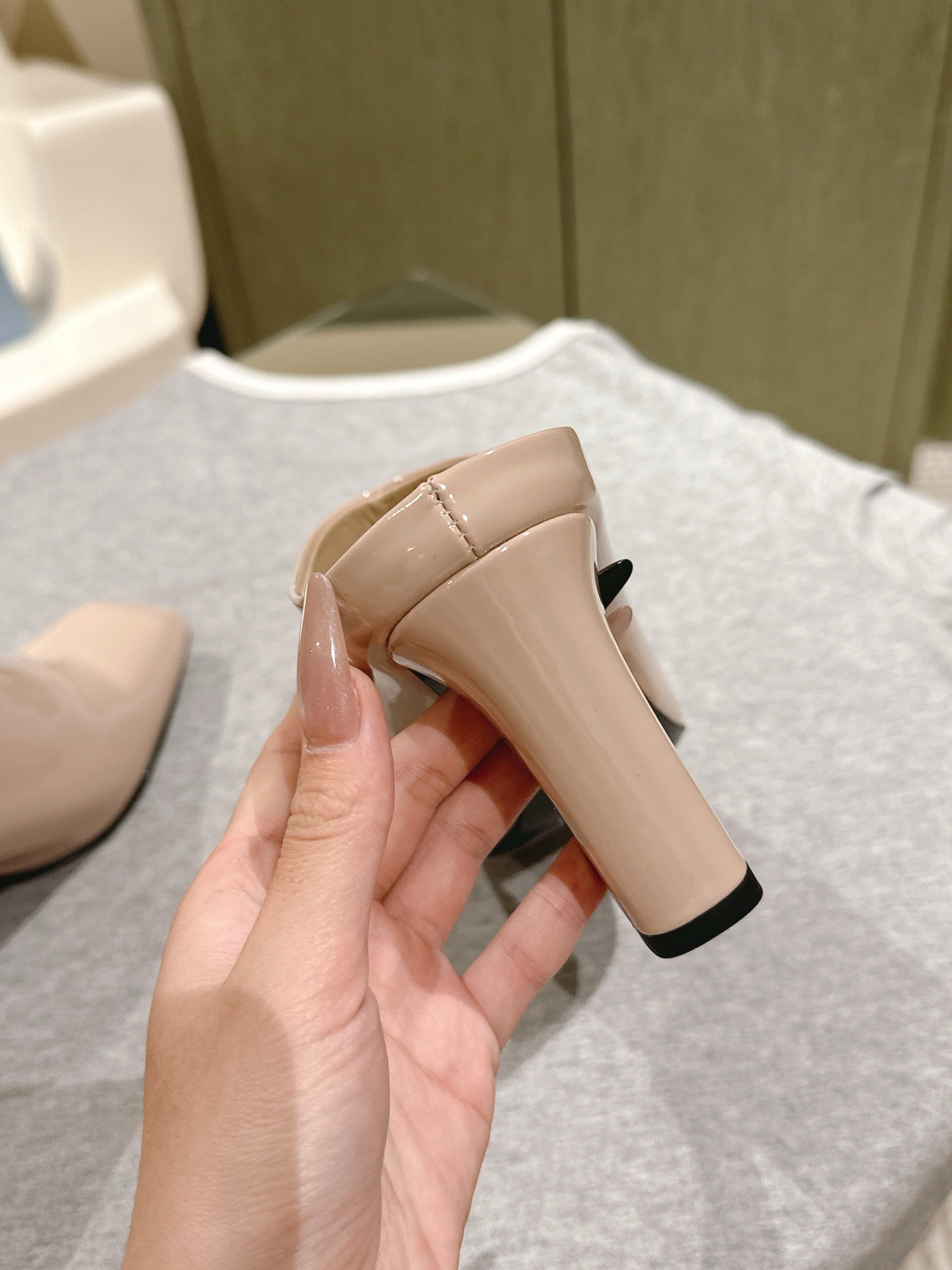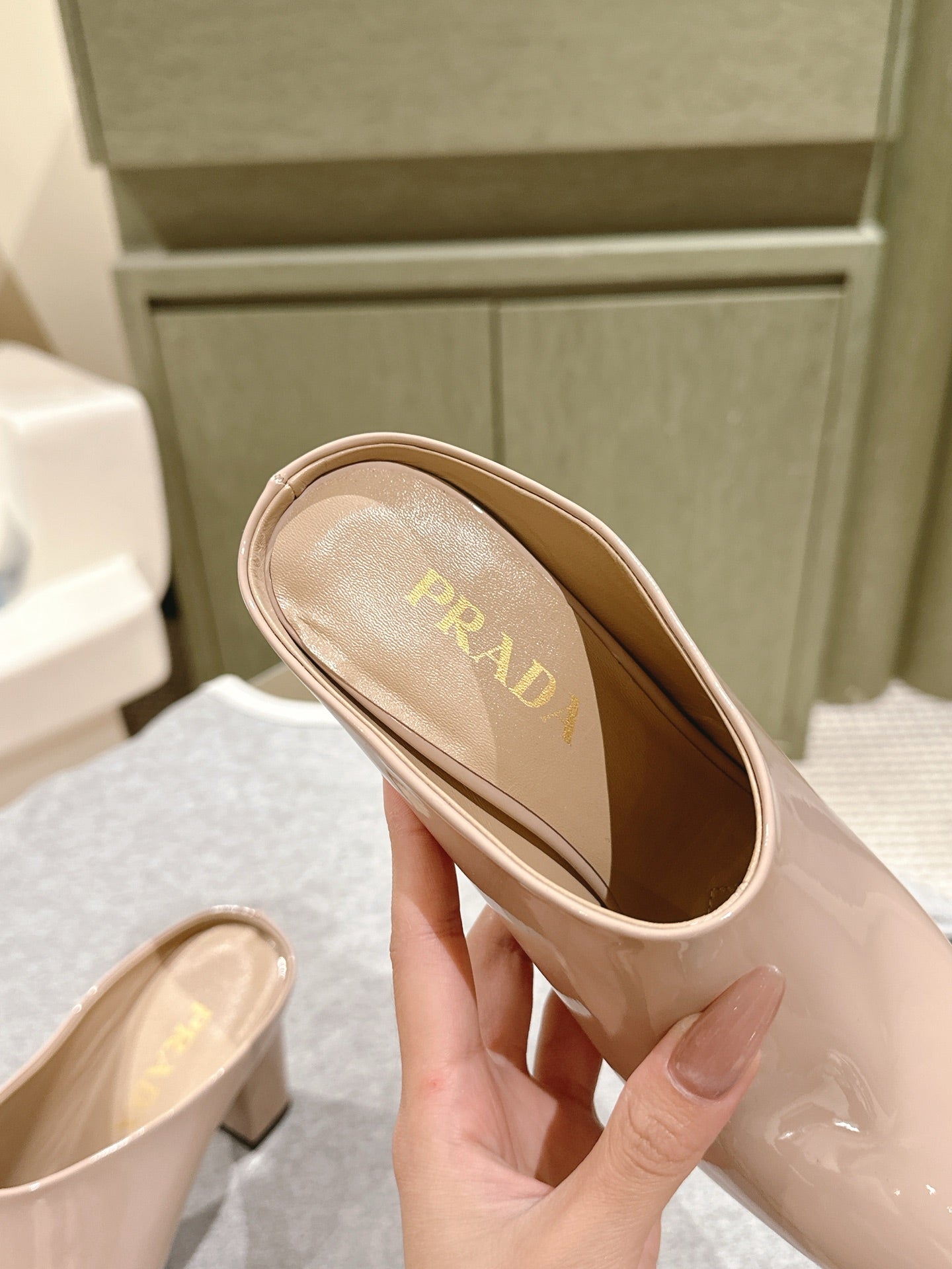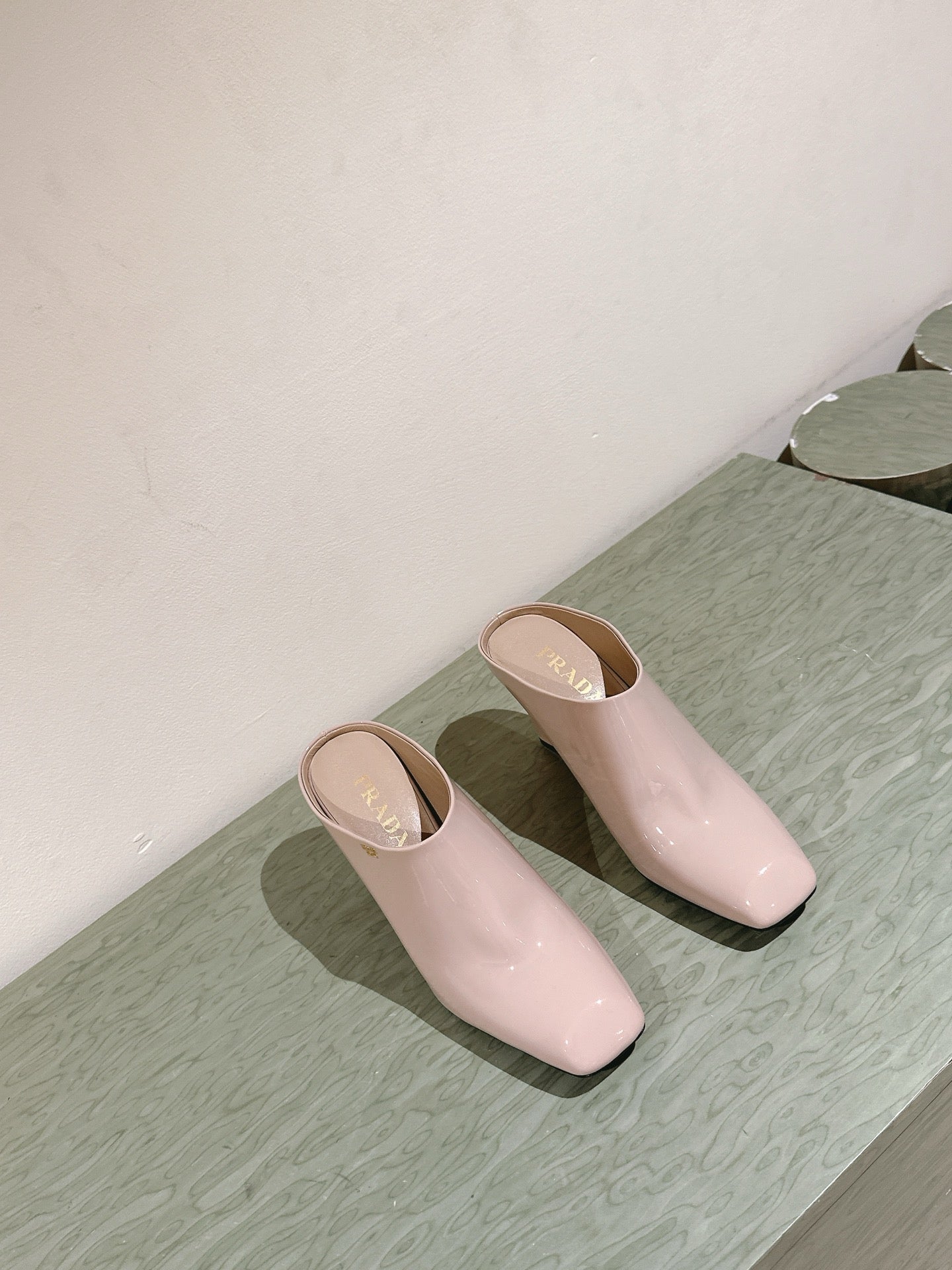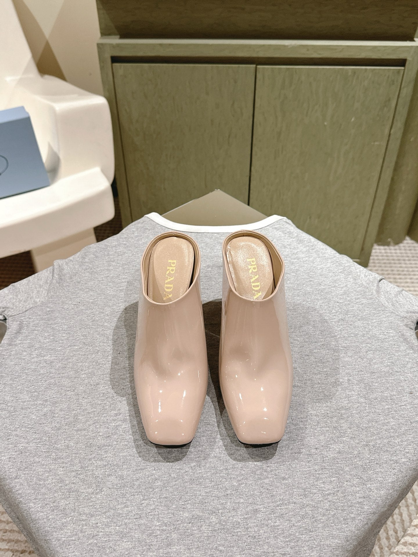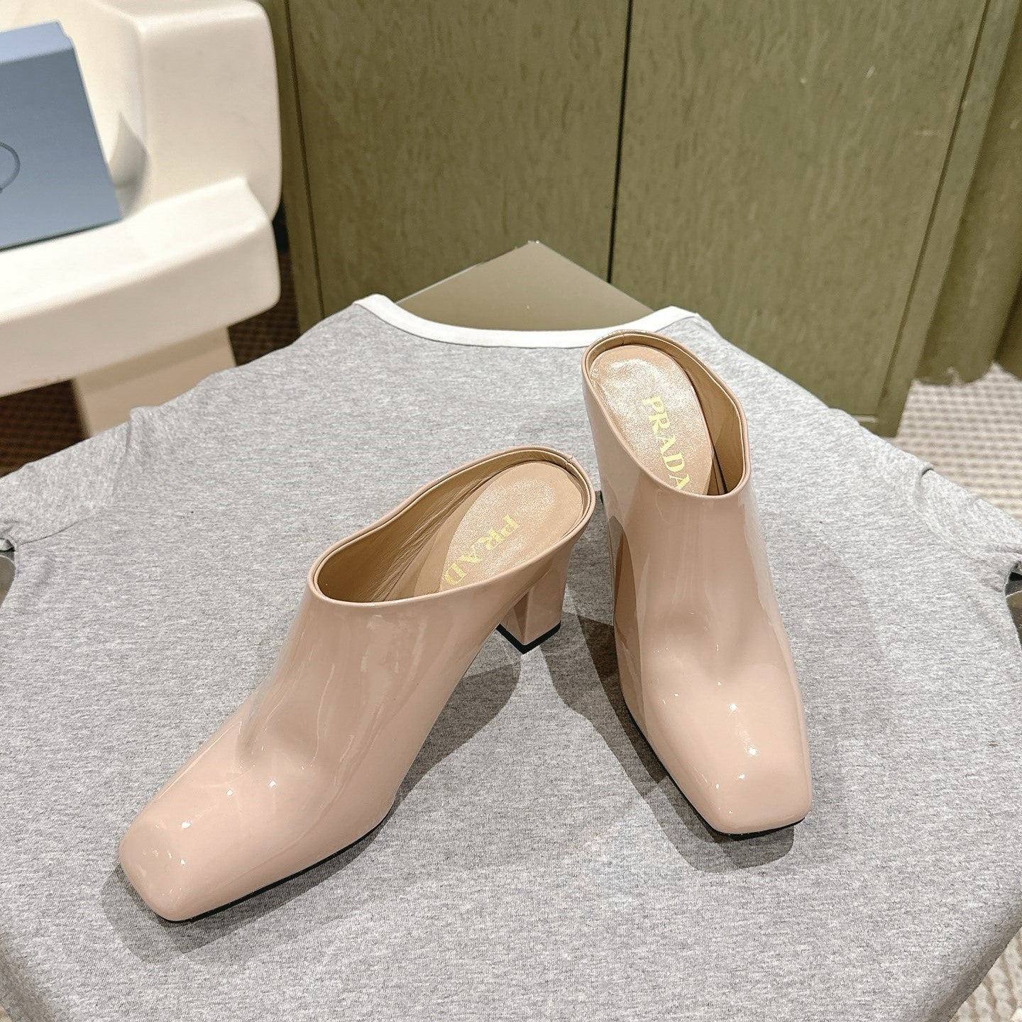 Prada Mules 85mm Beige Patent Leather 449620