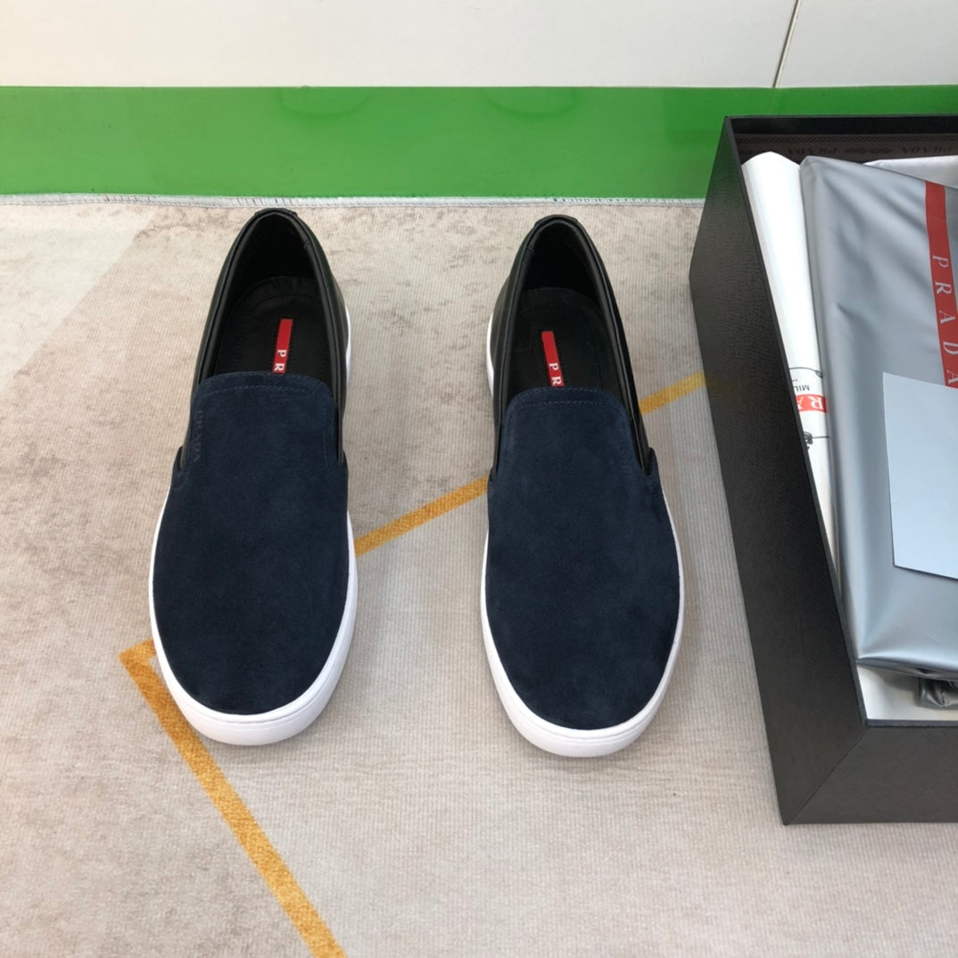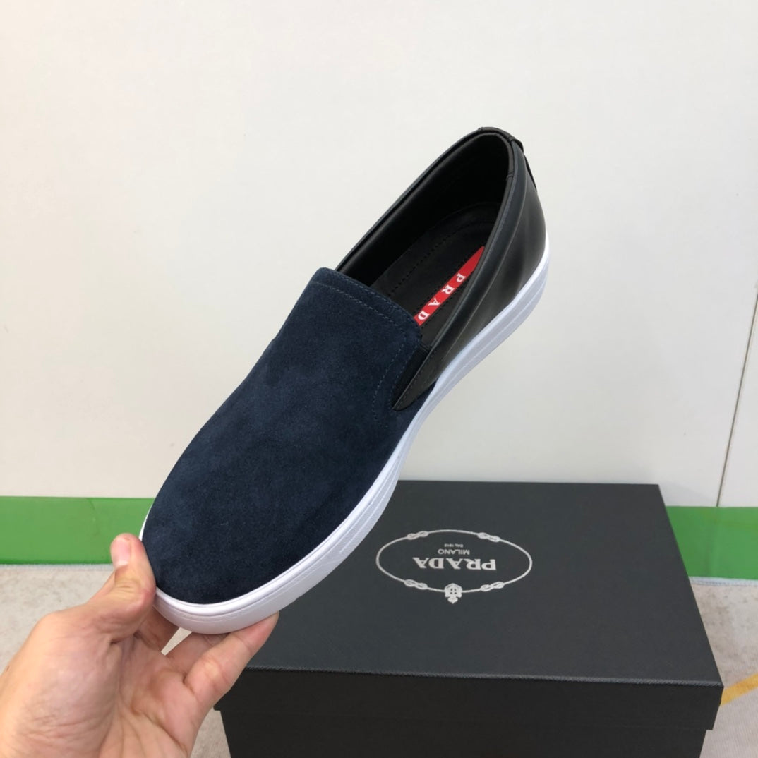 PRA LOAFER IN MIDNIGHT BLUE SUEDE AND BLACK CALFSKIN