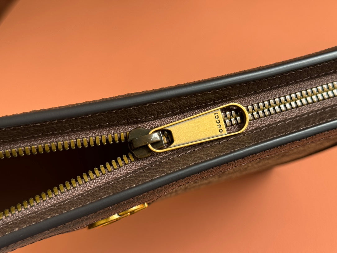 Gucci Ophidia 27cm Clutch Ebony Brown Canvas Leather 239914