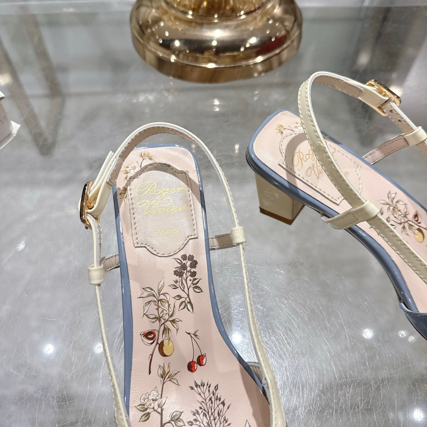 Viv 25 Flower Slingback Blue Italian Leather 300787