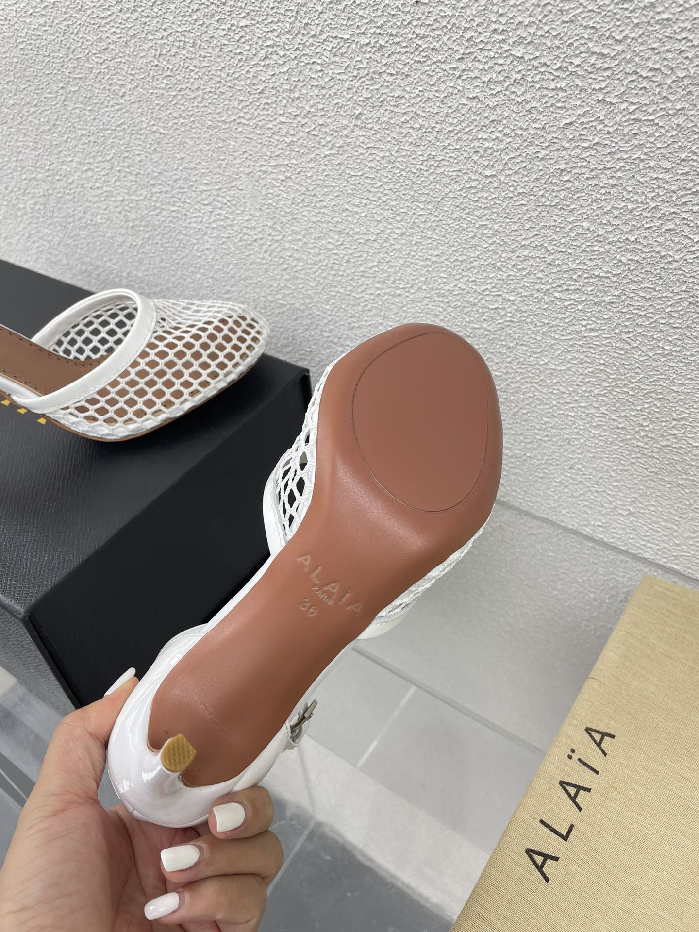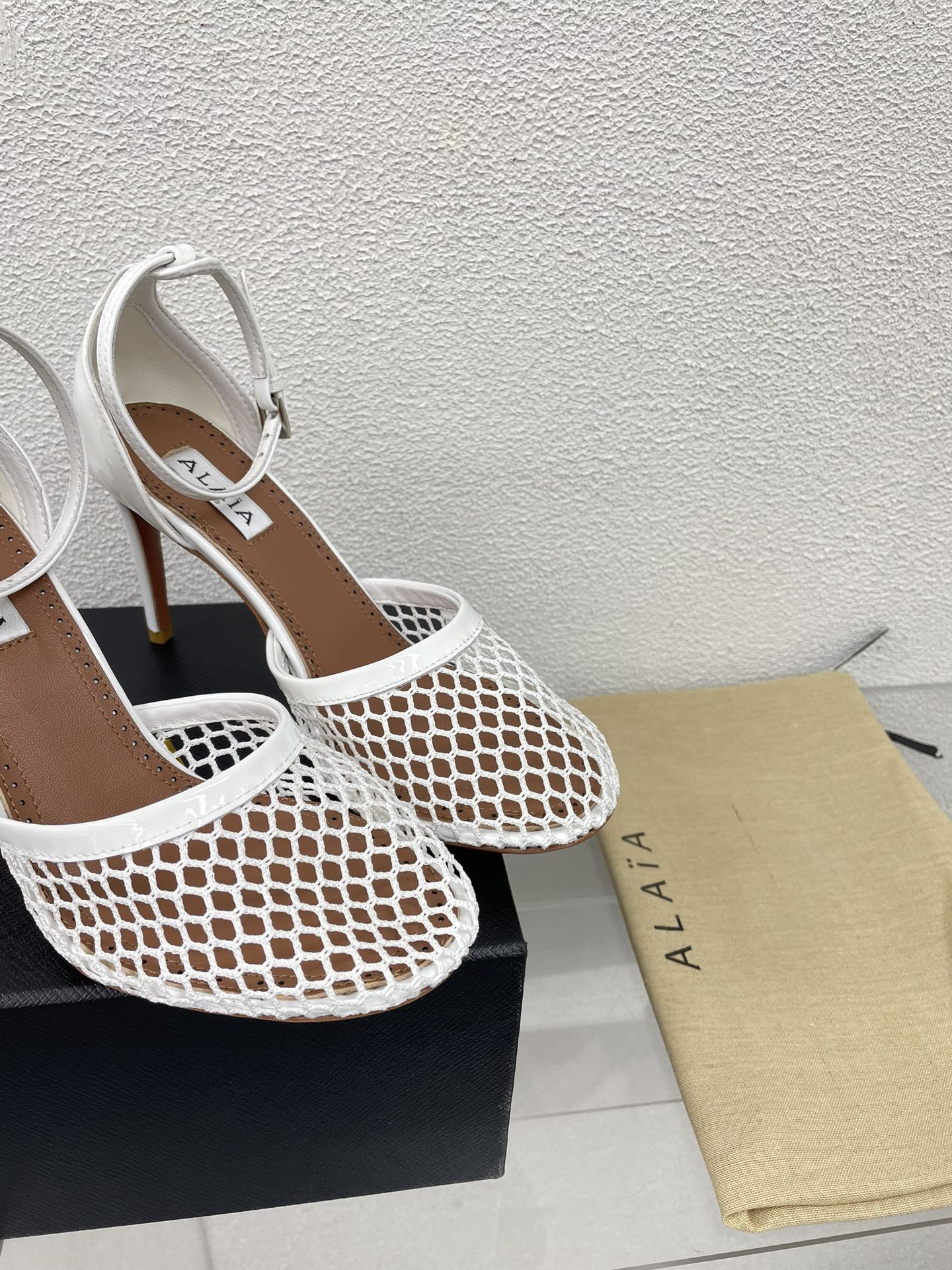 ALAIA HIGH FISHNET 9 CM PUMPS IN WHITE MESH