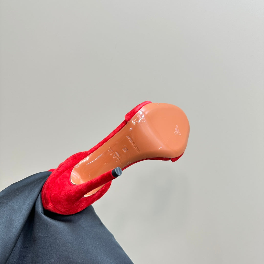 ALAIA HIGH HEEL SANDAL 10 CM IN CHERRY RED SUEDE