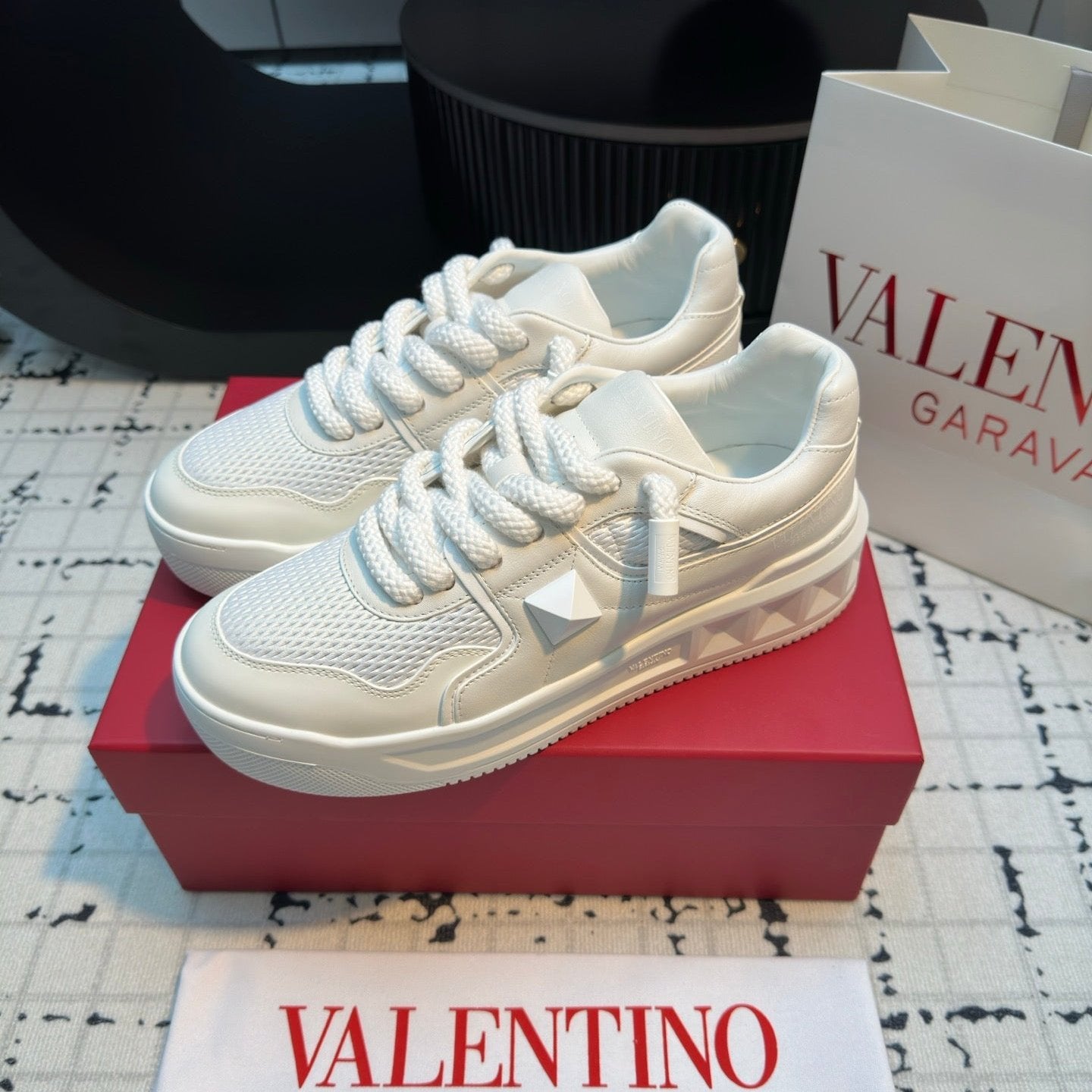 One Stud Xl Trainer In White Nappa Leather And Mesh Fabric 824990