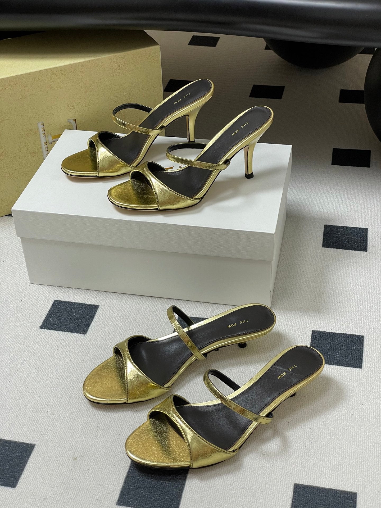 The Row 25S Strap High Heel Mule Sandals 35mm Black Mix Gold Metallic Cowhide 286218