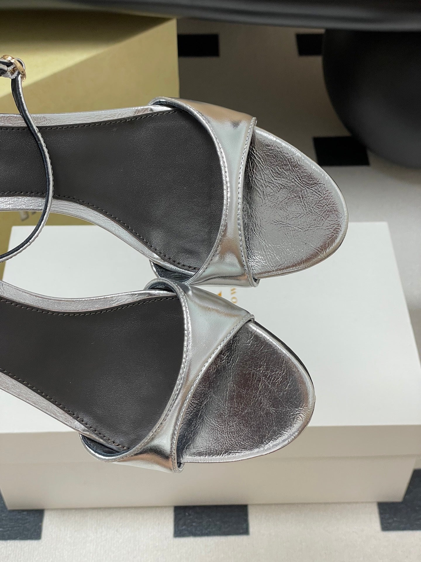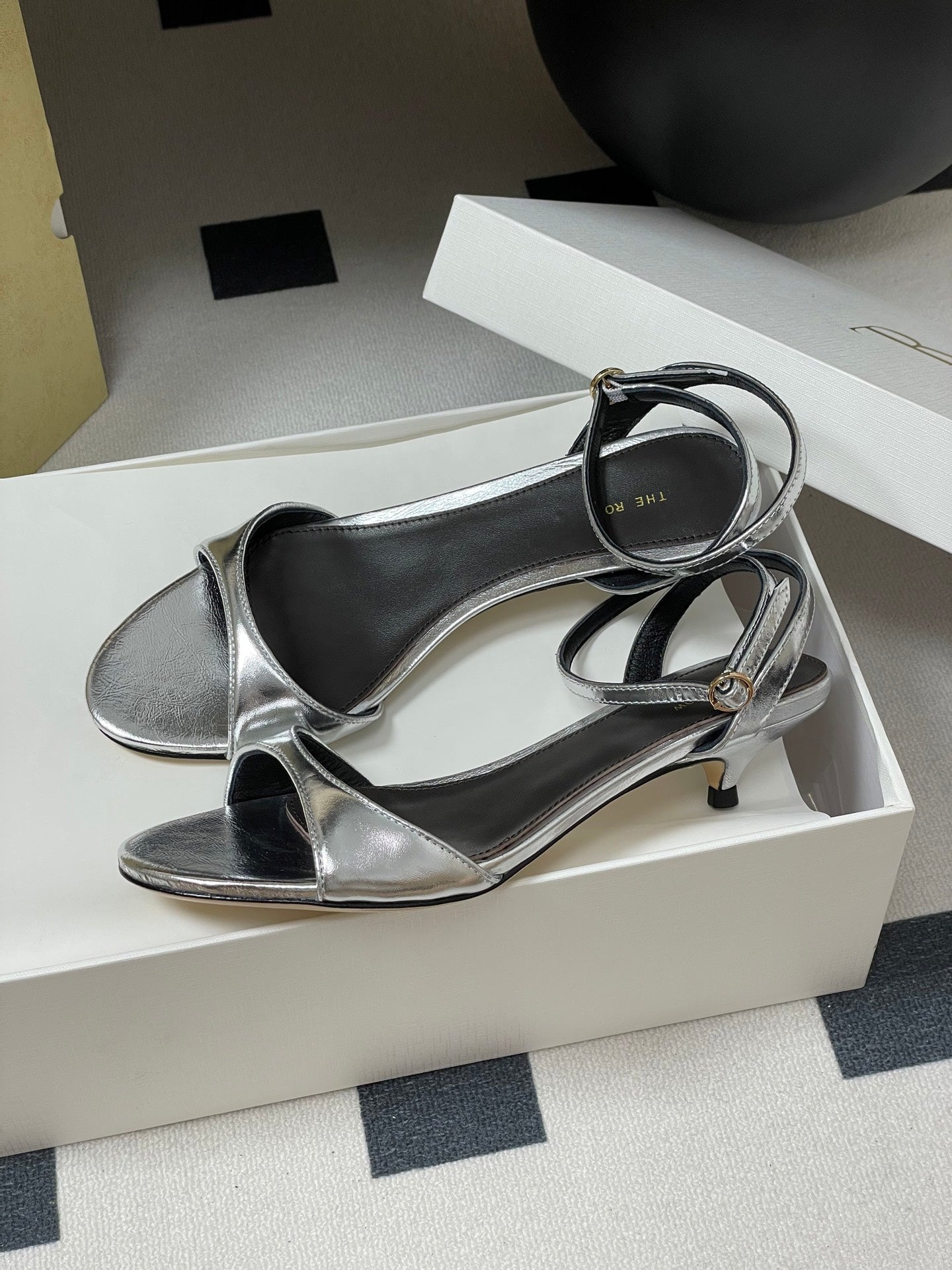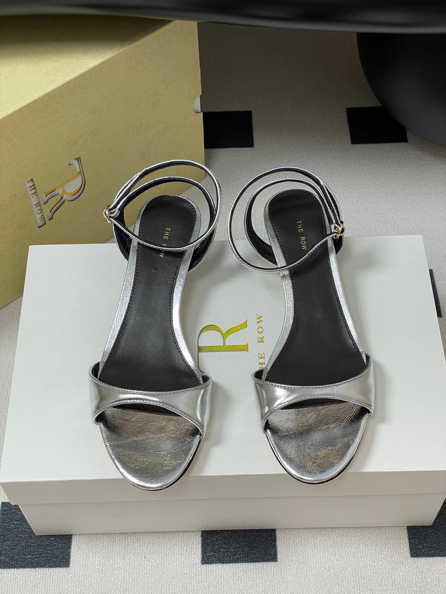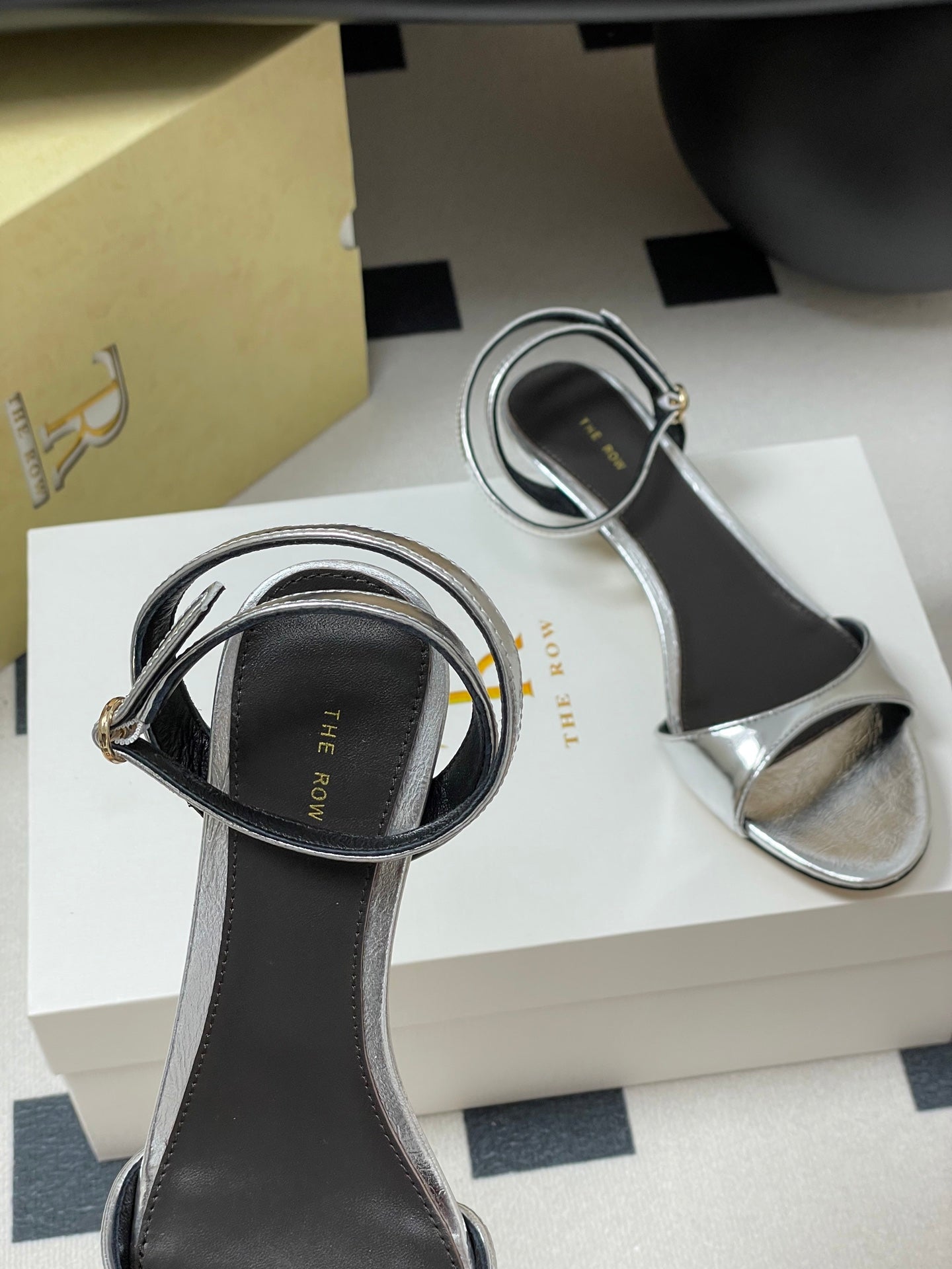 The Row 25S Strap High Heel Sandals 35mm Black Mix Silver Metallic Cowhide 286201