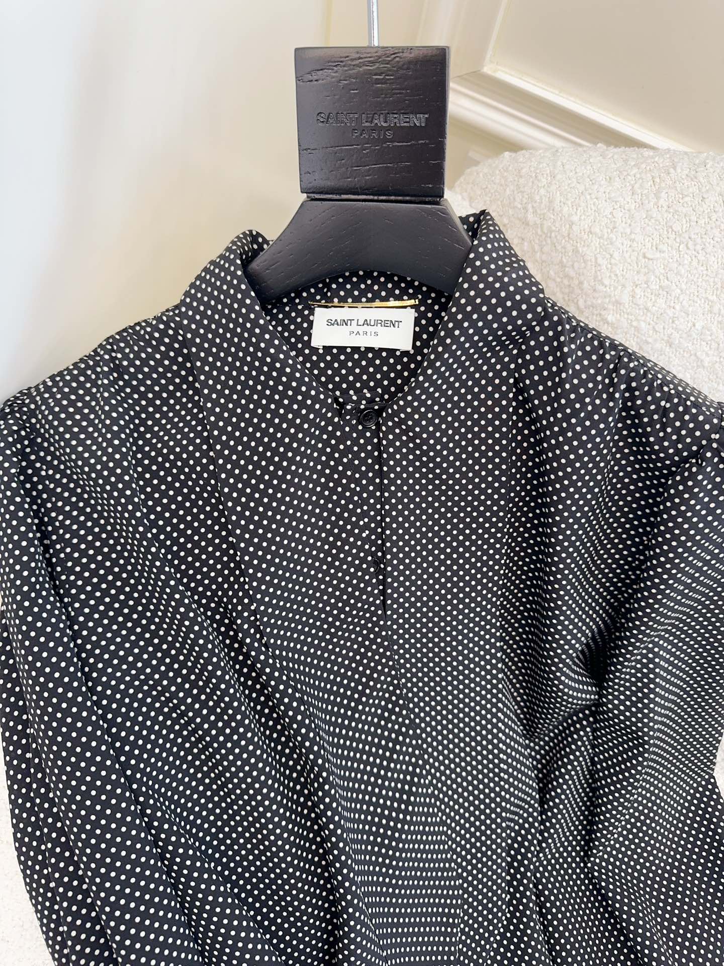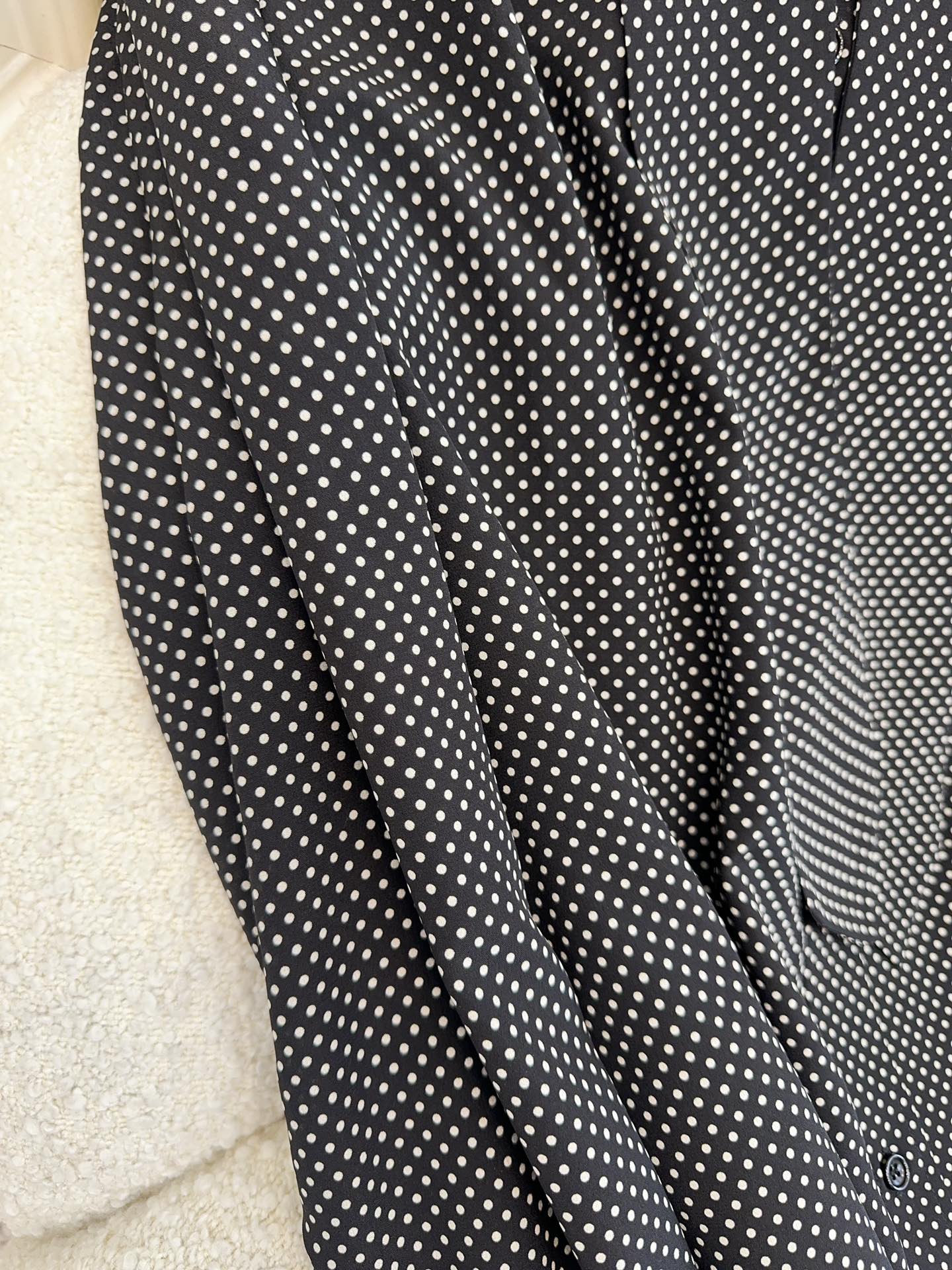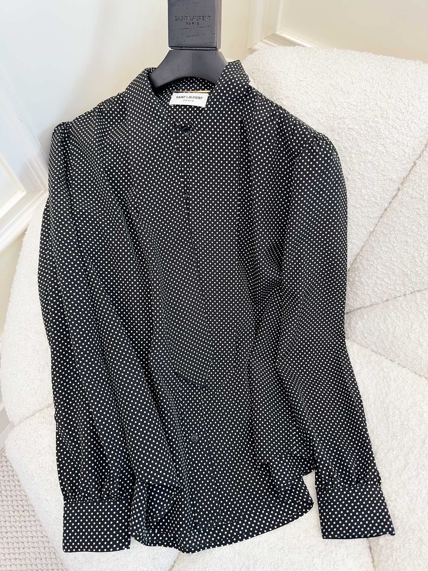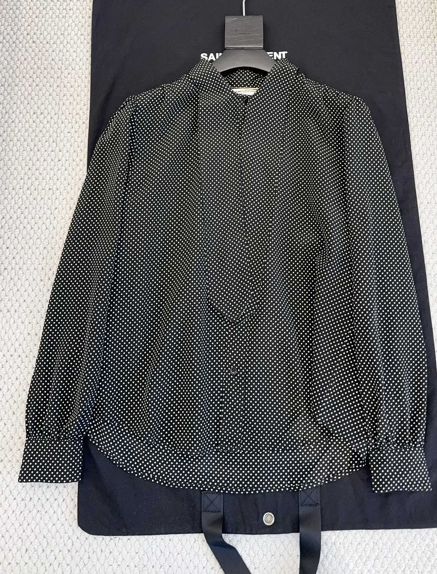YSL 2025 Polka Dot Shirt Black mix White Silk