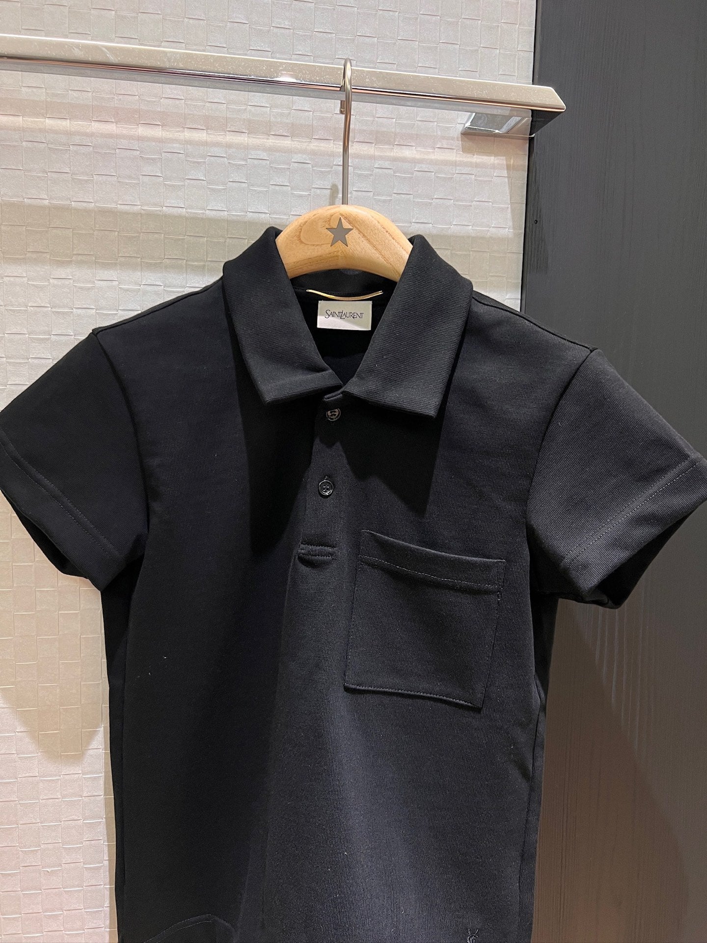 YSL 2025 Polo Collar T-shirt Black and Gray Cotton