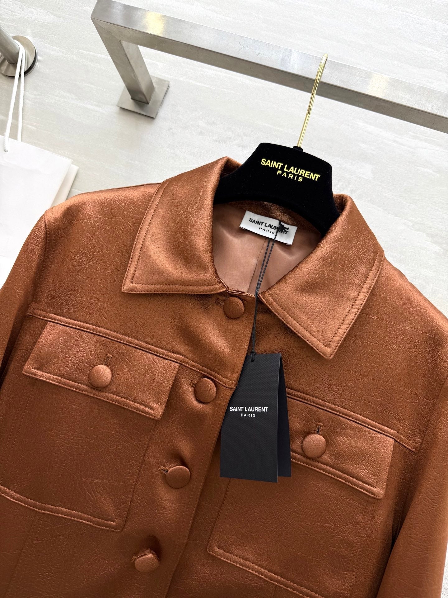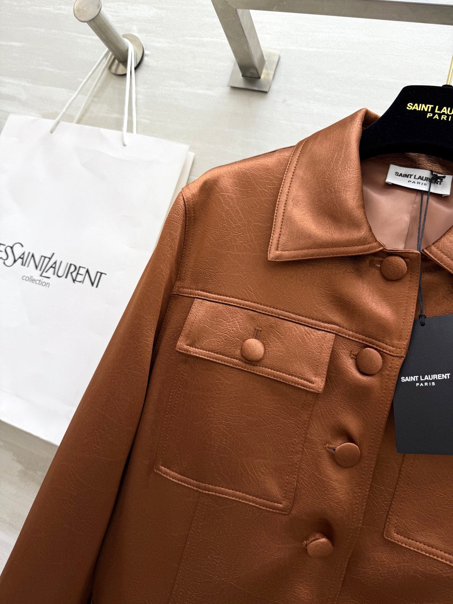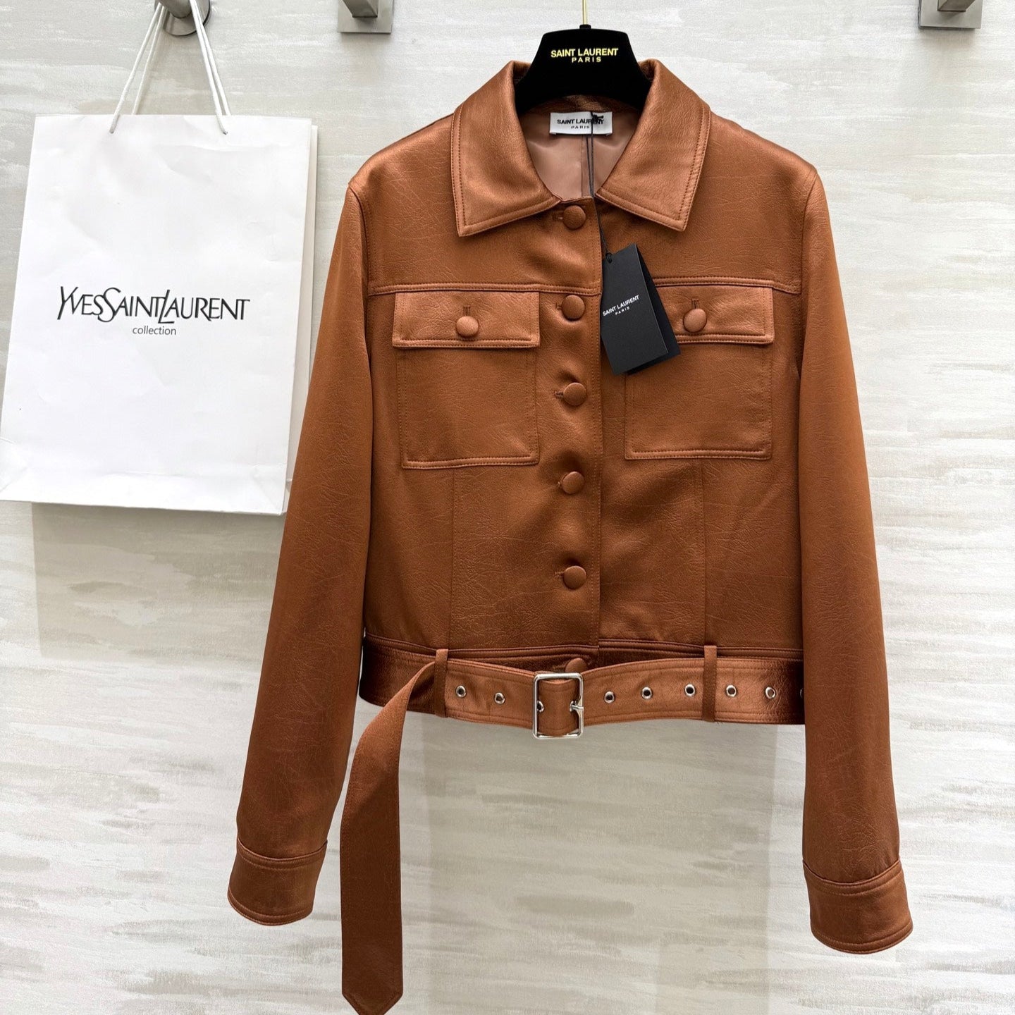 YSL 25 Cracked Pleated Jacket Brown Acetate