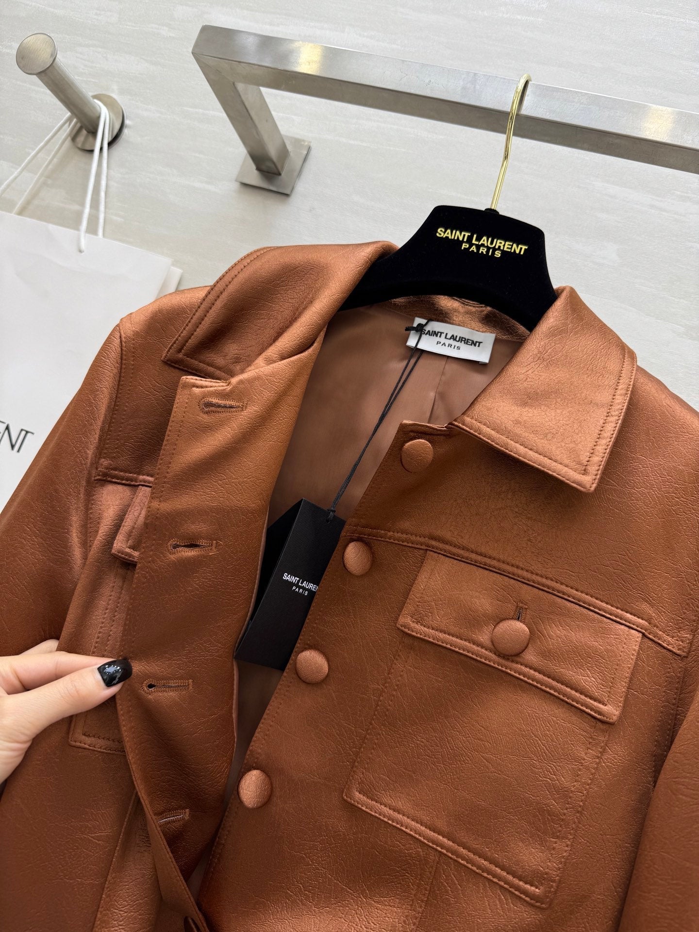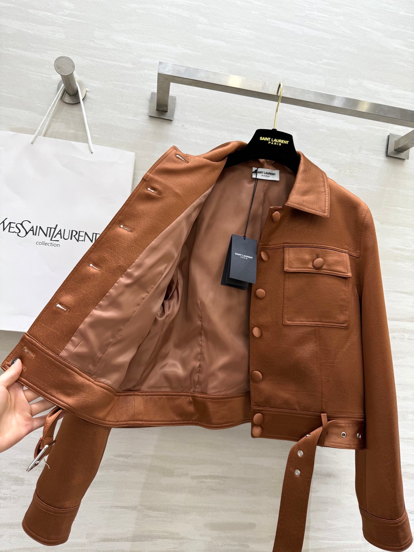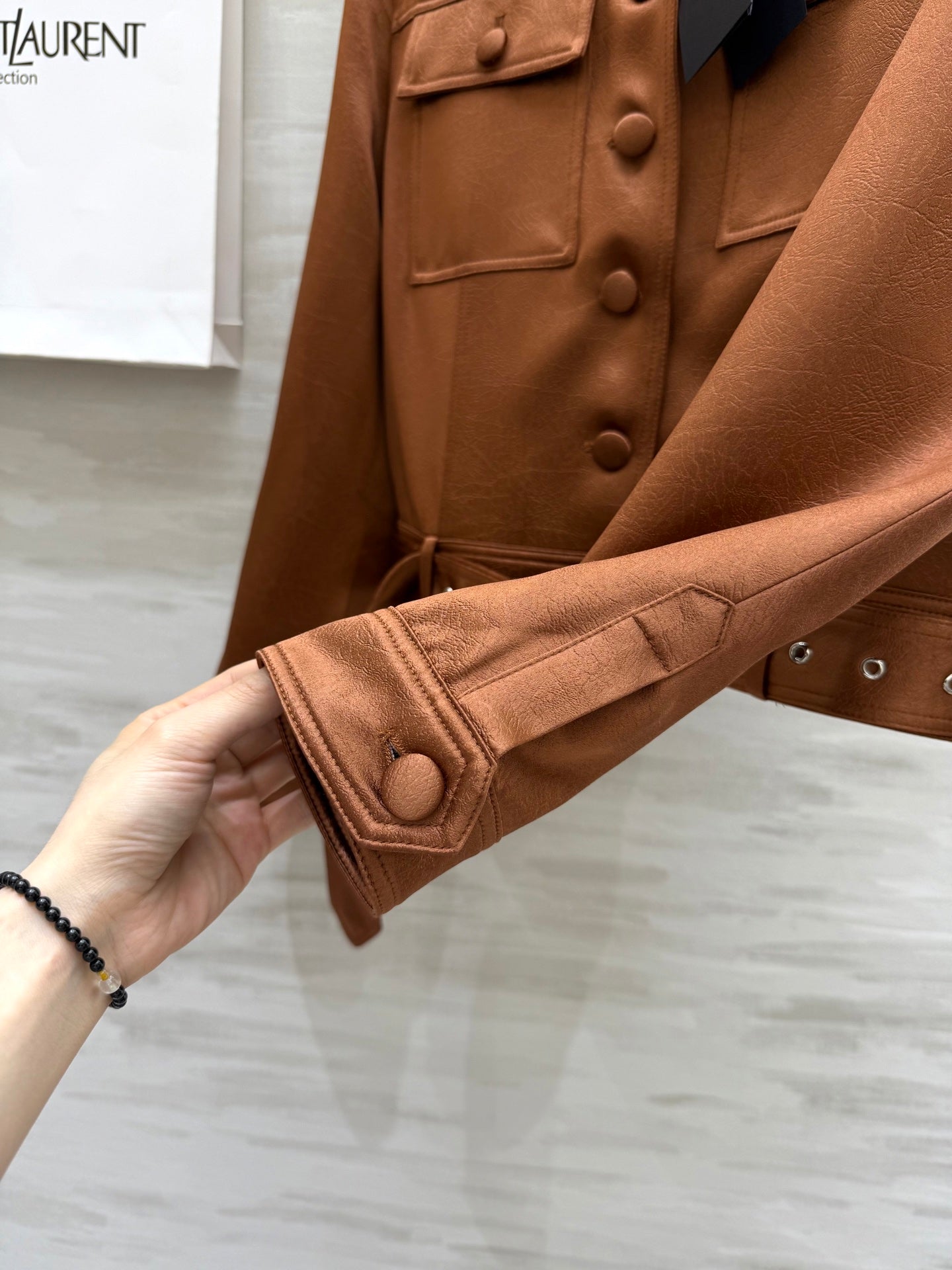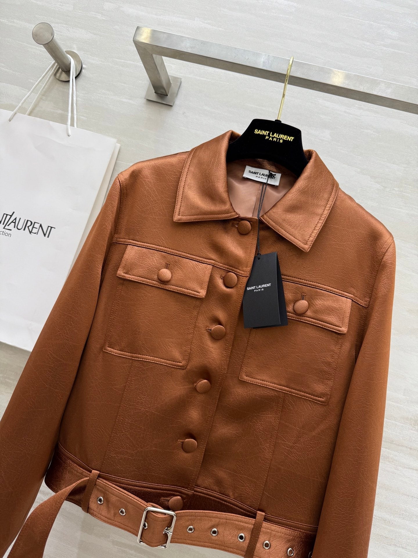 YSL 25 Cracked Pleated Jacket Brown Acetate
