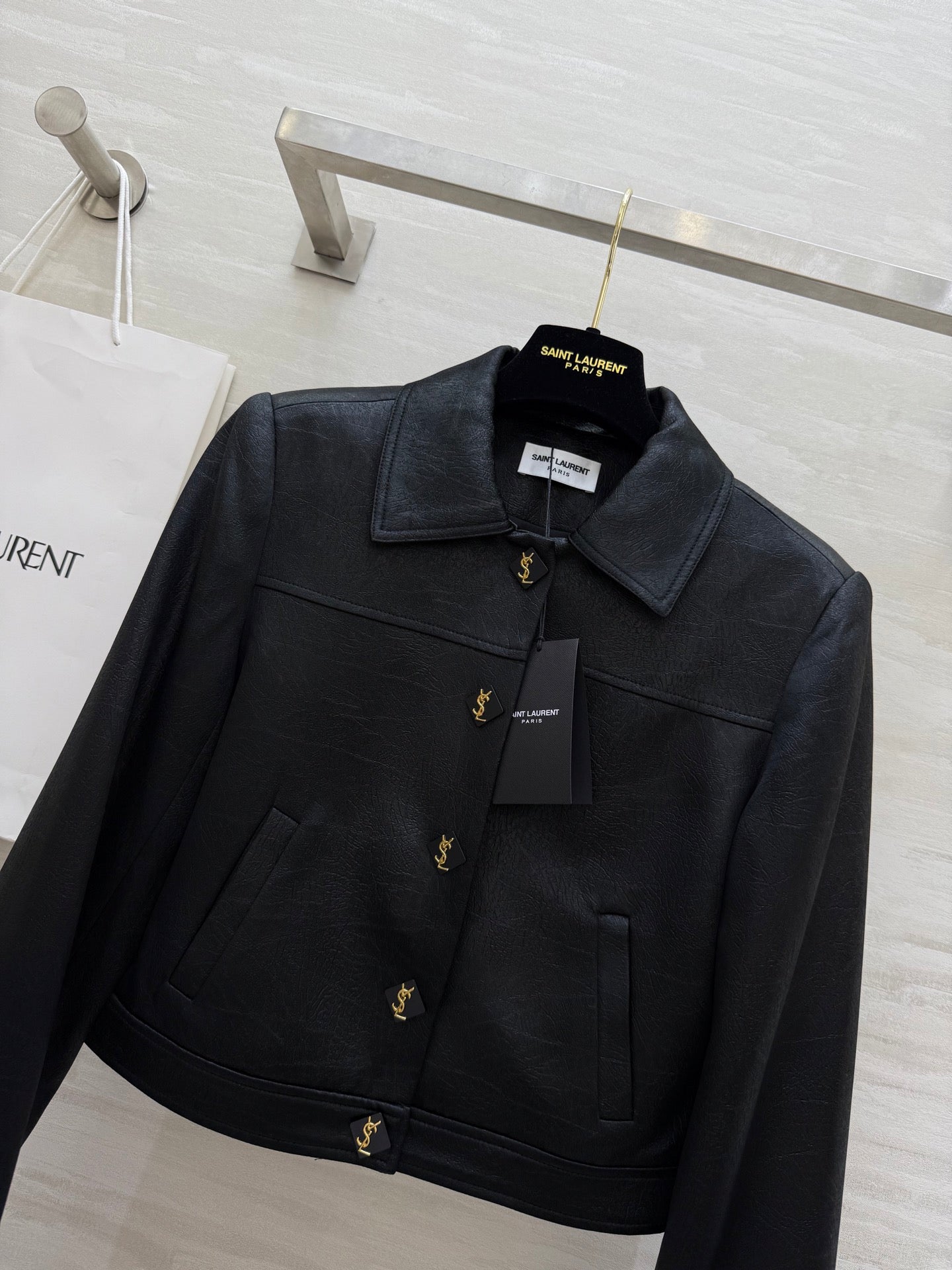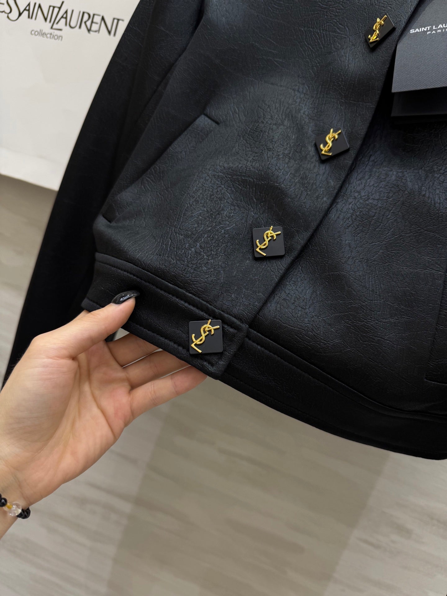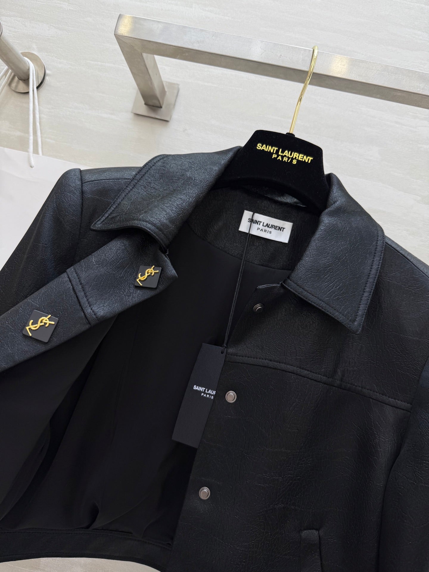 YSL 25 Short Jacket Black Acetic Acid Cracked Fabric