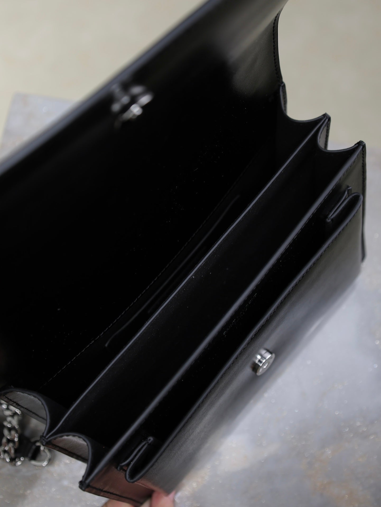 YSL Medium Sunset Shoulder Bag 22cm Black Cowhide Sliver HW