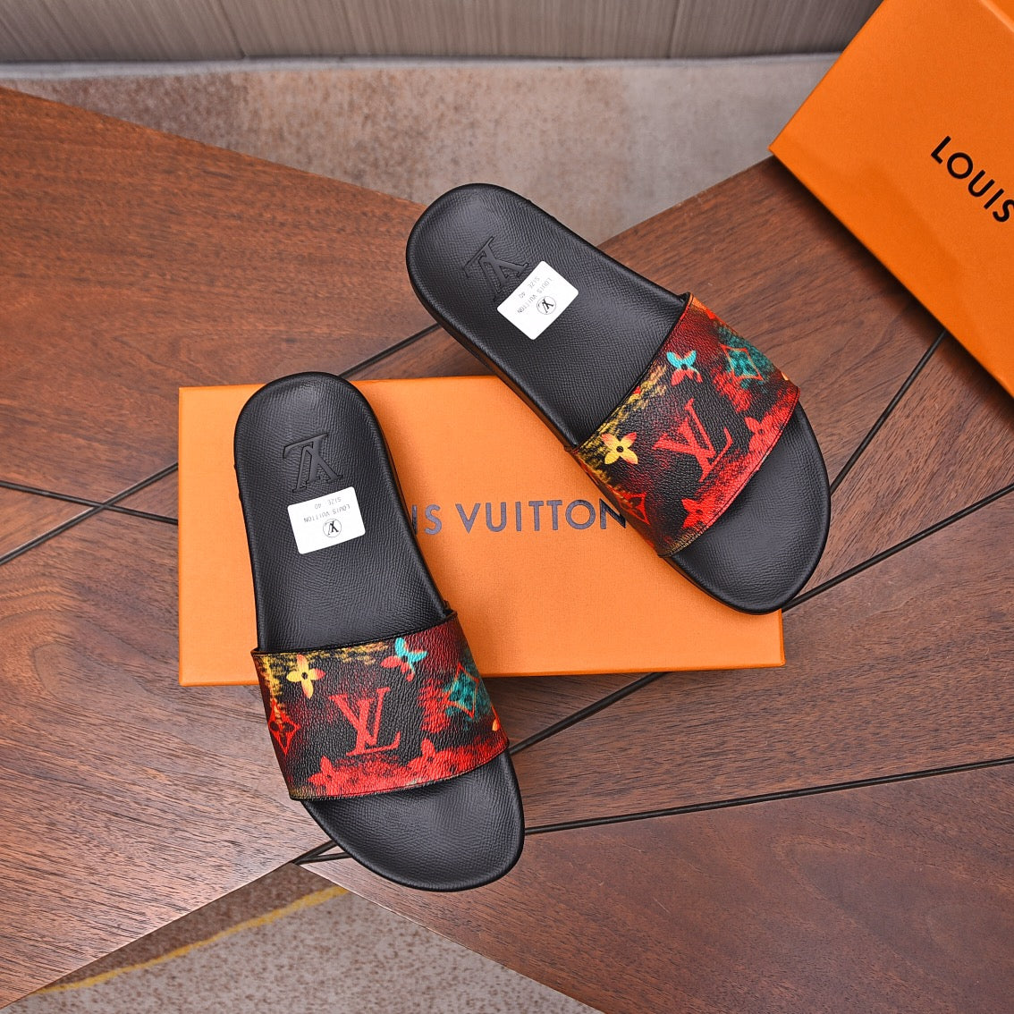 LV MULE RED WITH LOGO MONOGRAM CALFSKIN