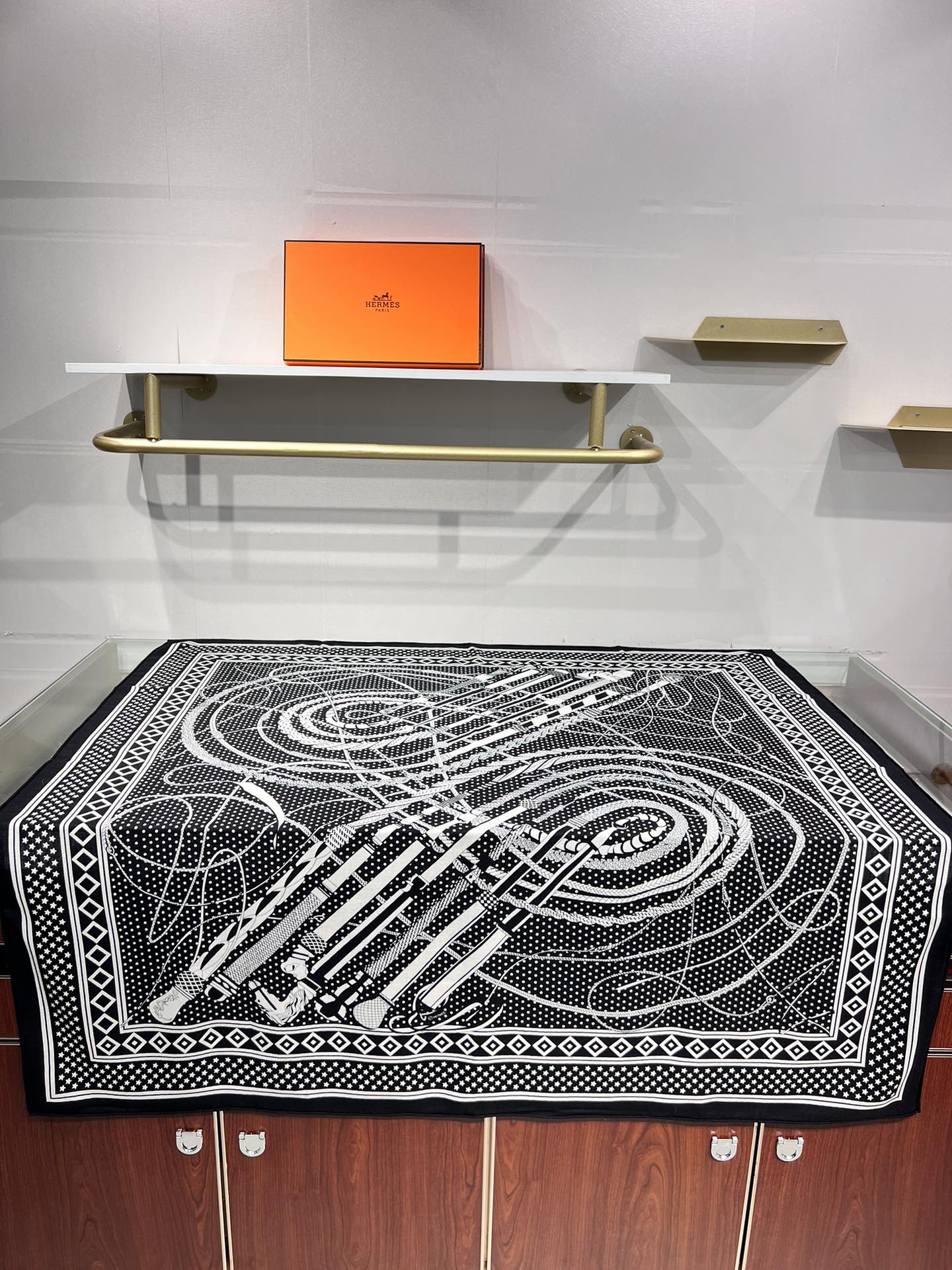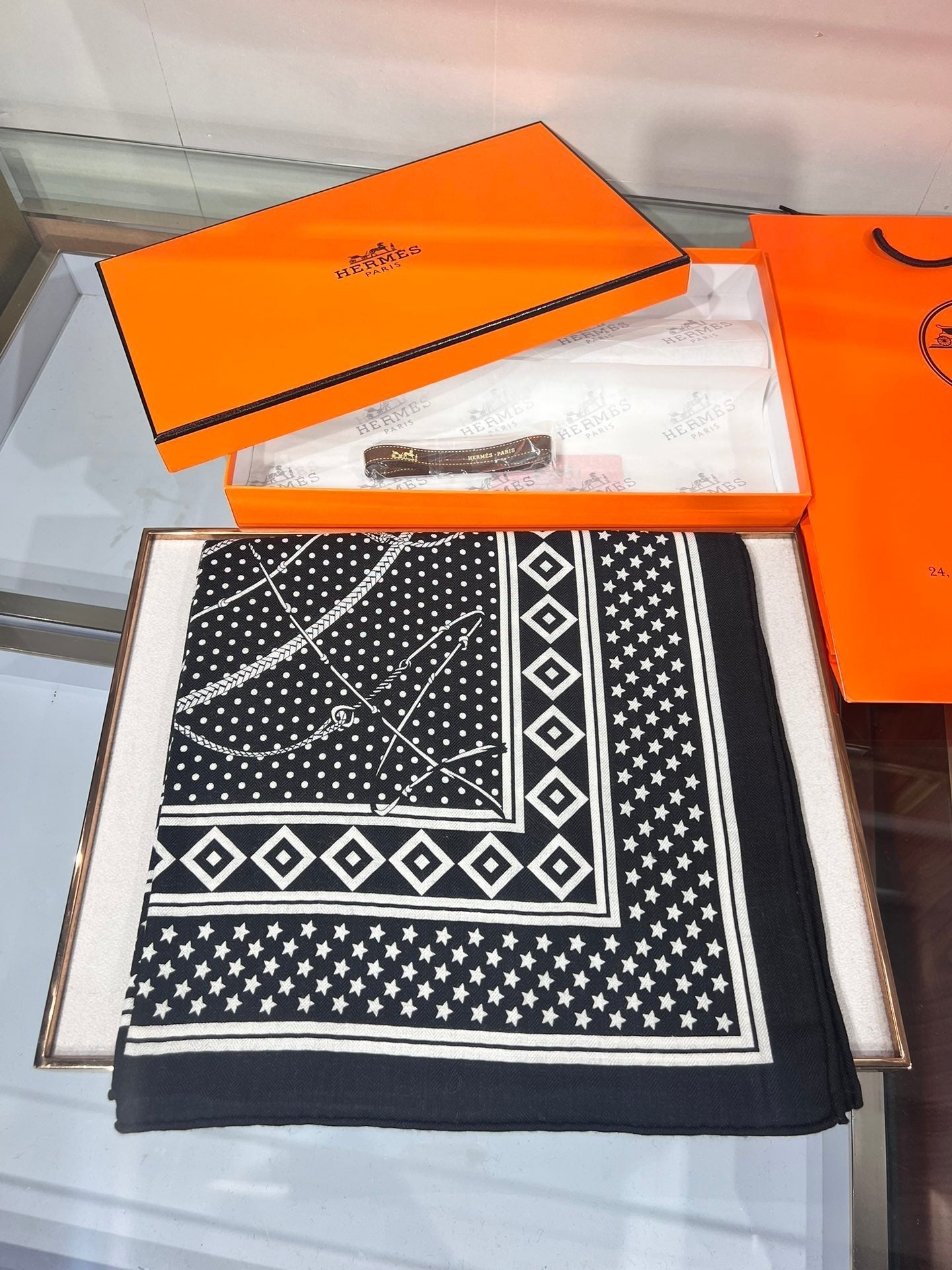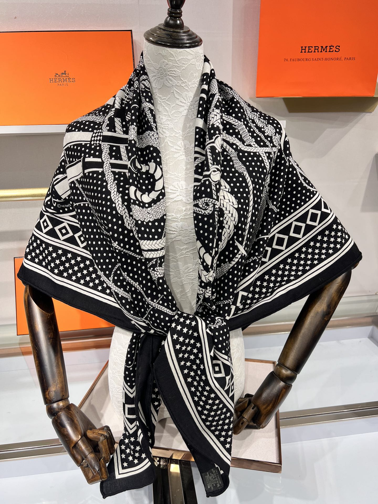SCARF 140 CM IN BLACK MIX WHITE CASHMERE AND SILK 379767