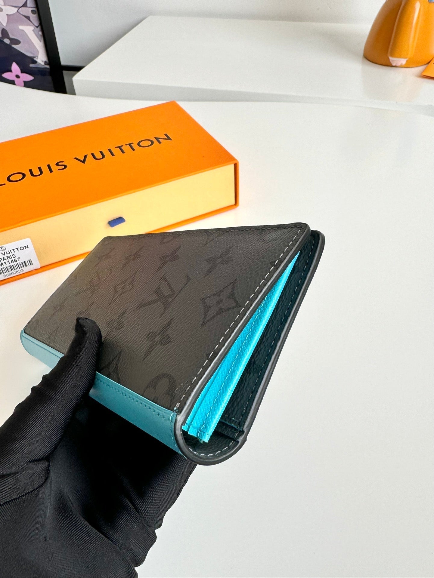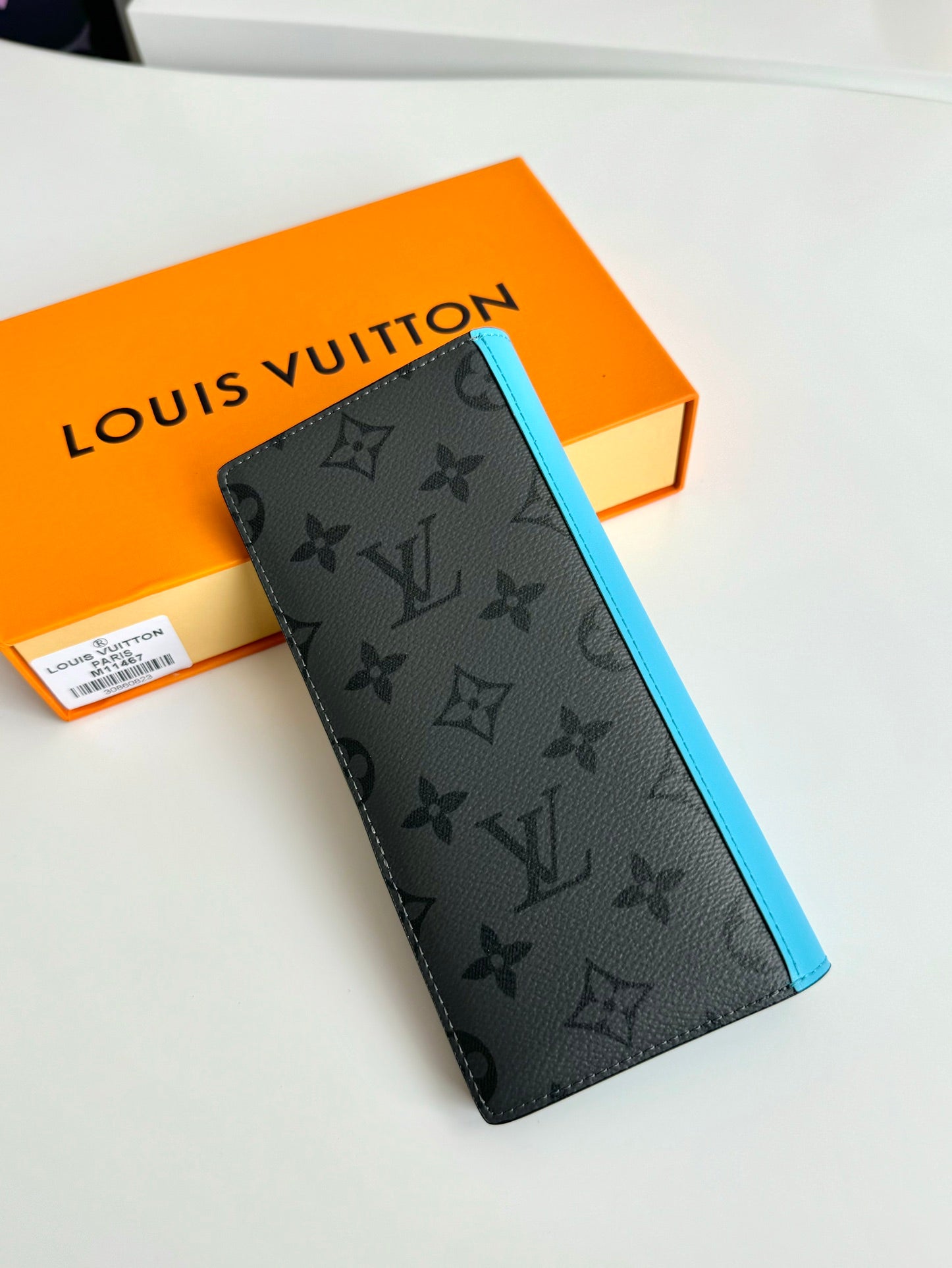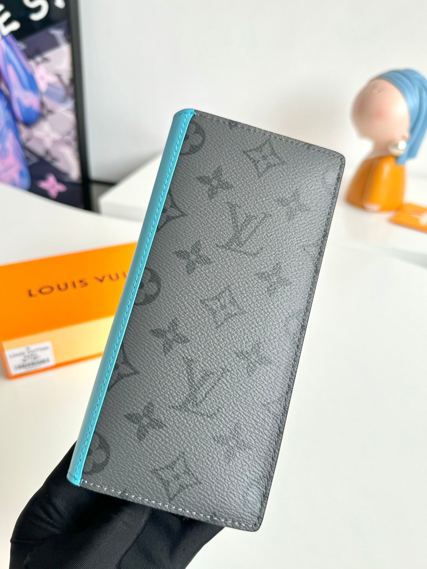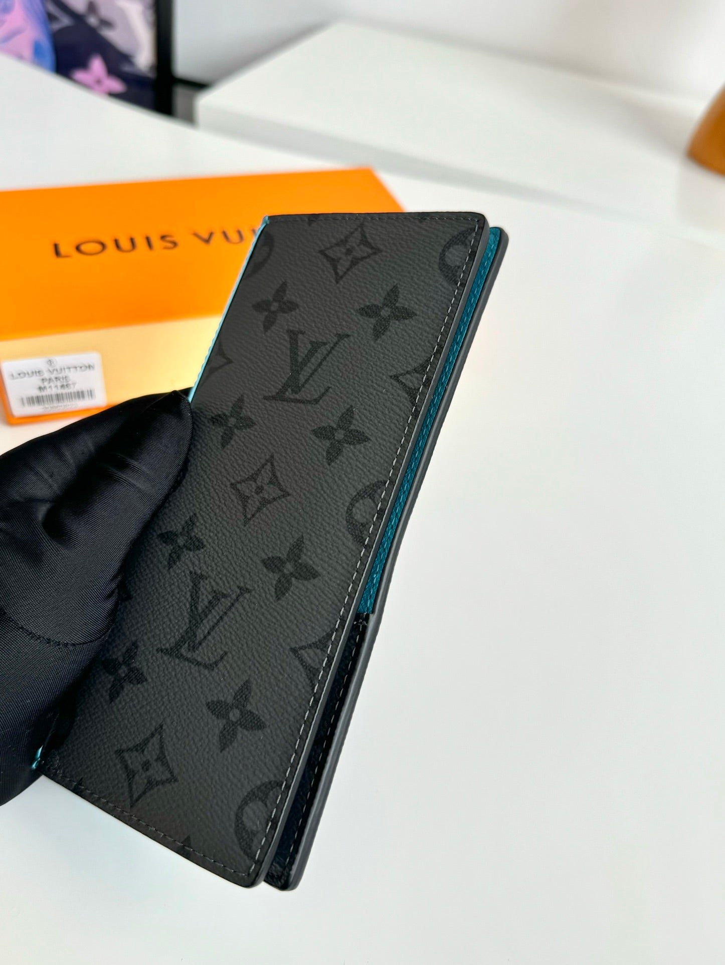 LV Brazza Wallet Turquoise Monogram Eclipse Canvas 221447