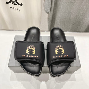 SLIDE SANDALS IN BLACK NYLON AND RUBBER WHITE PRINT