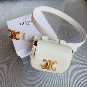 CEL 25mm Medium Triomphe Belt in Taurillon White Leather 176288