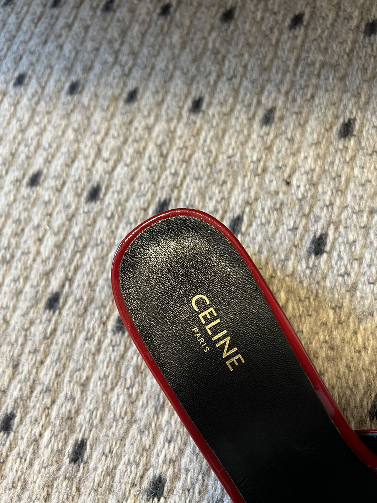 CLEMENCE MULE IN RUBY RED LAMBSKIN AND PATENT CALFSKIN