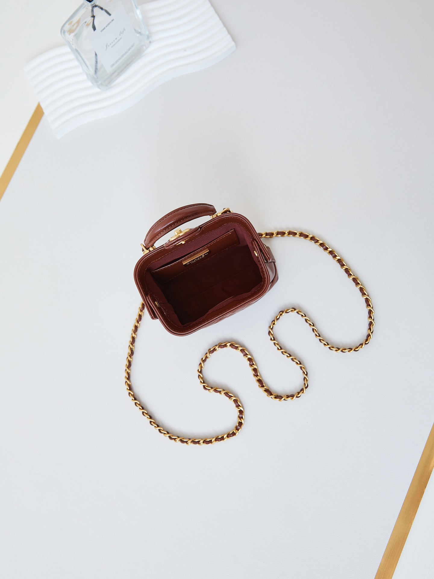 CC 24A Mini Top Handle 13cm Brown Wax Leather Gold Hardware 238463