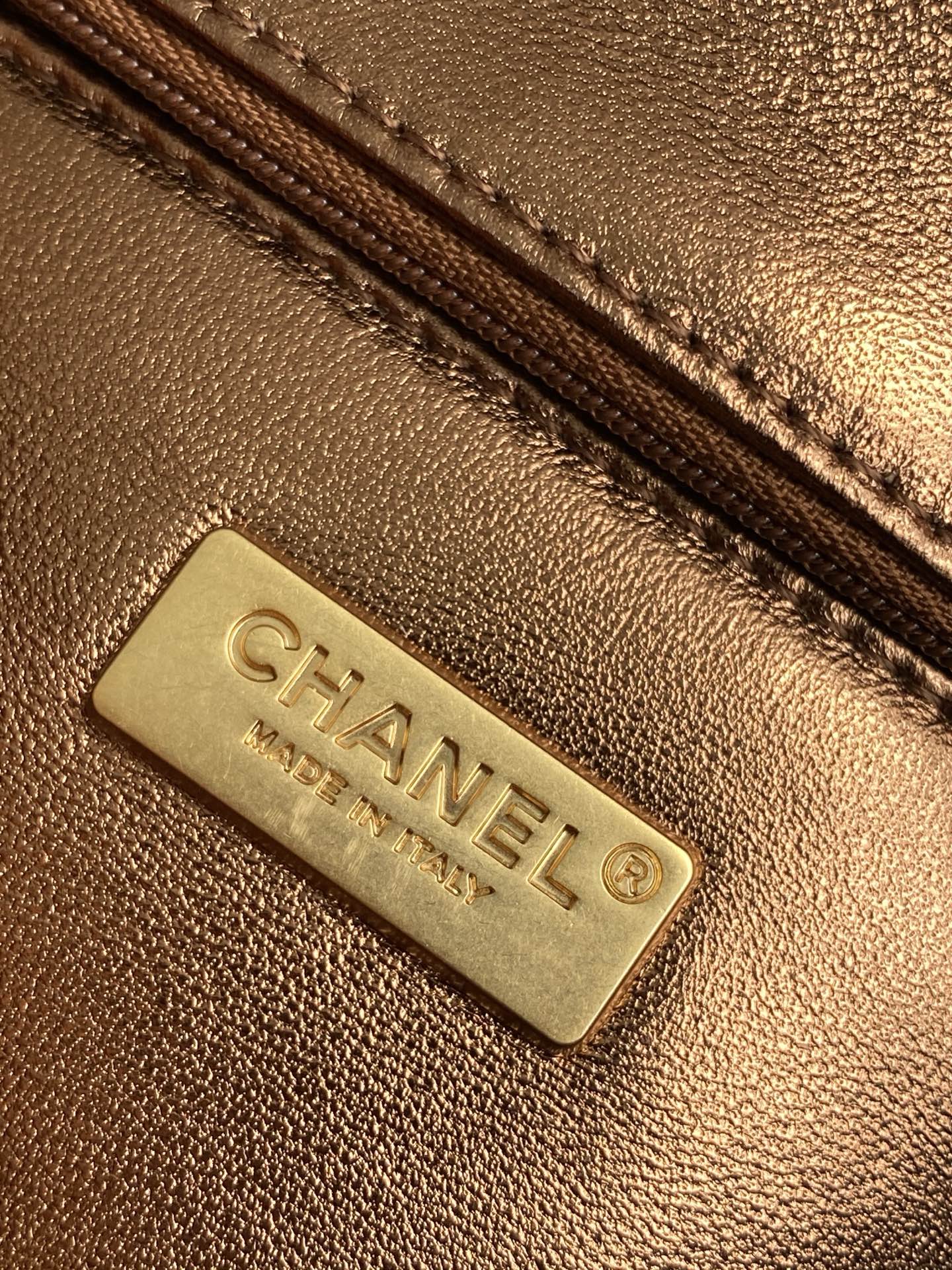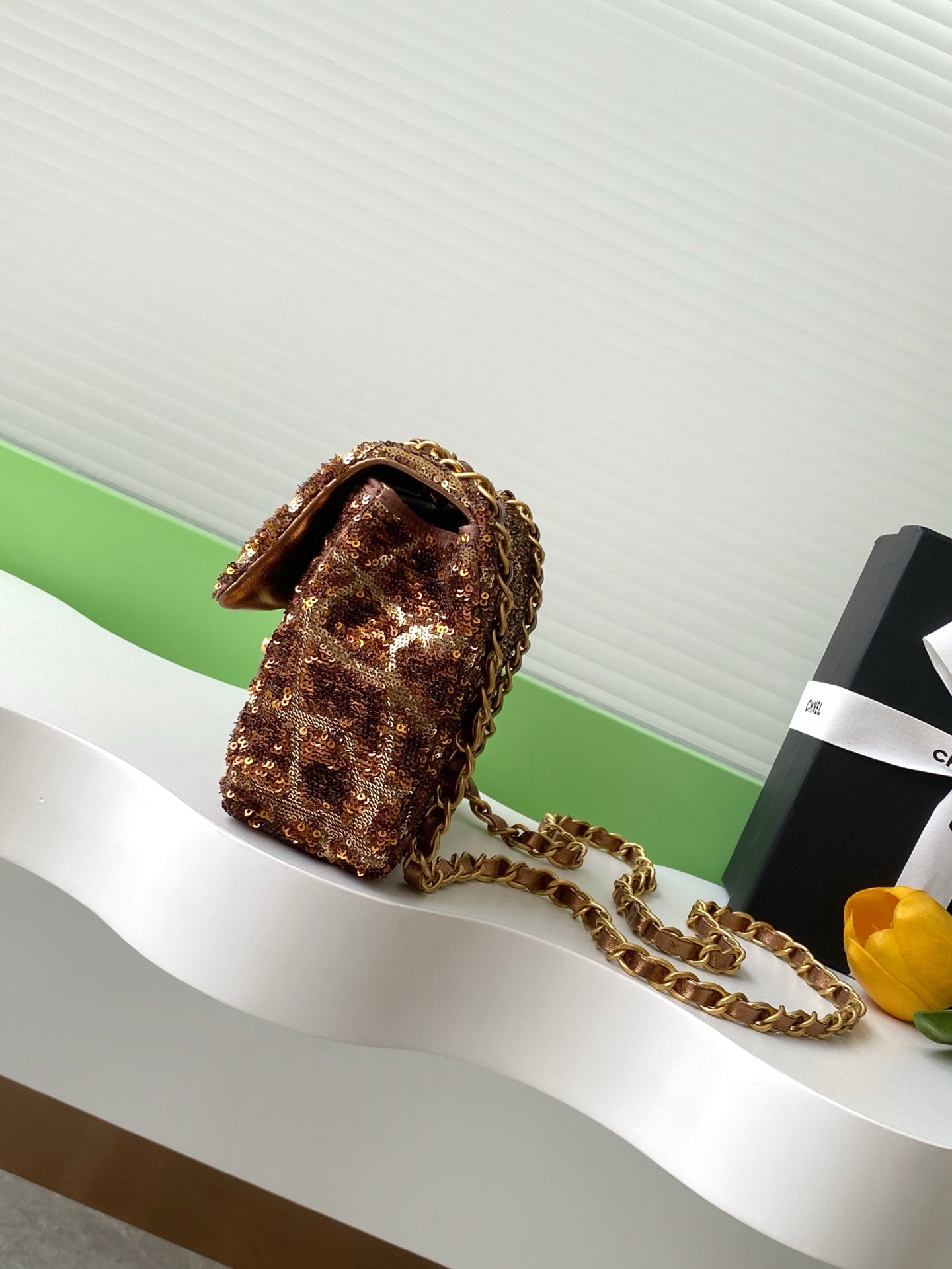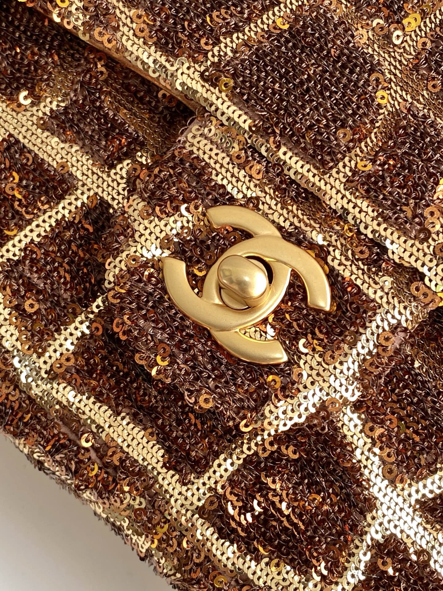 cc 25S Flap Bag 21cm Brown Gold Sequin Calfskin