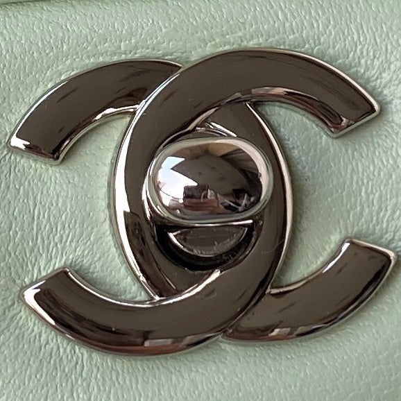 Medium Classic Flap Bag 23cm Light Green Lambskin Silver Hardware