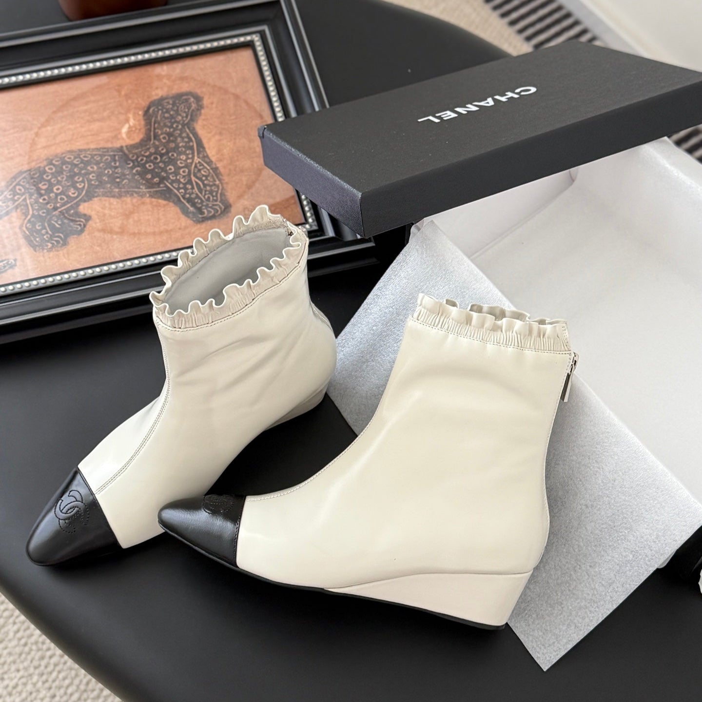 CC 25P Show-Style Platform Wedge Mary Jane Boots White Patent Cowhide 458771