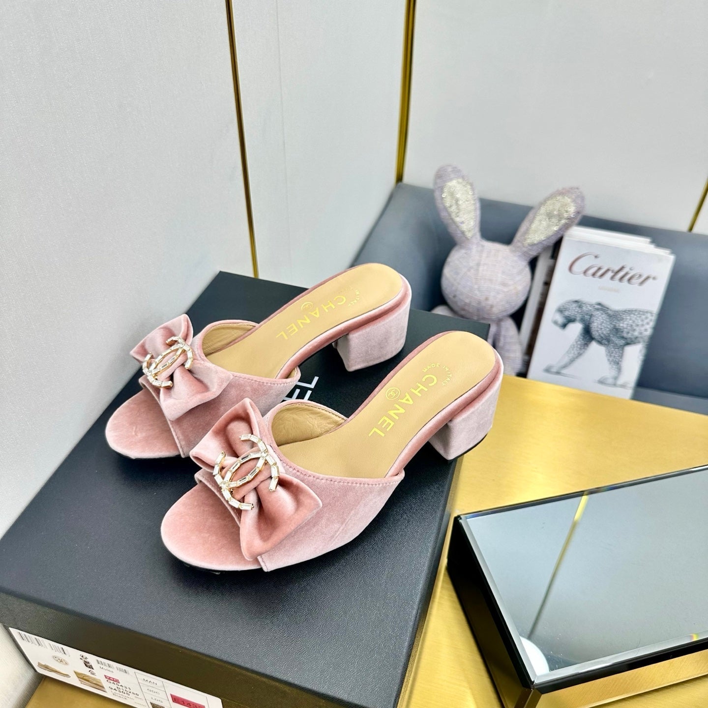 cc 25 bow mule sandal 50mm pink velvet 238480