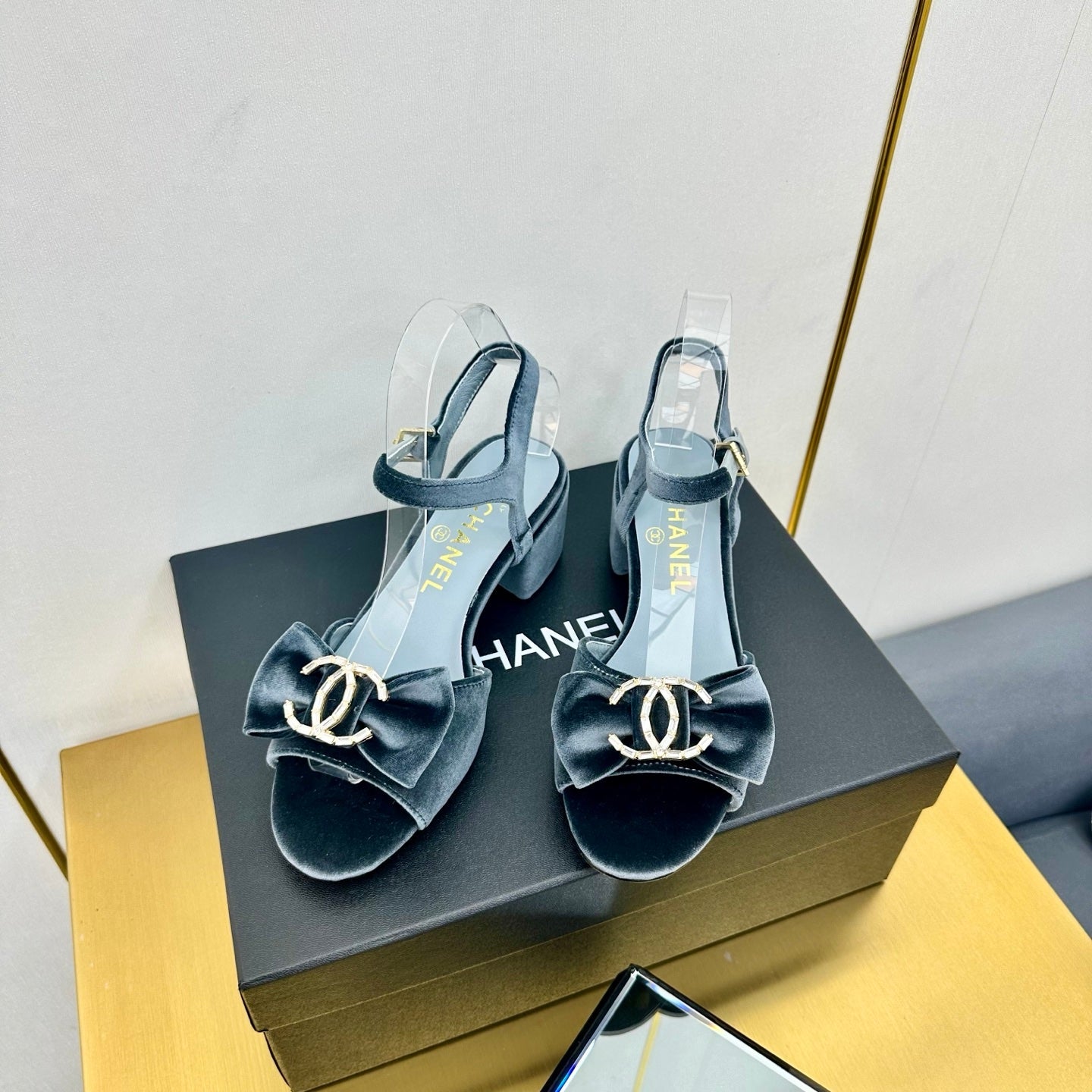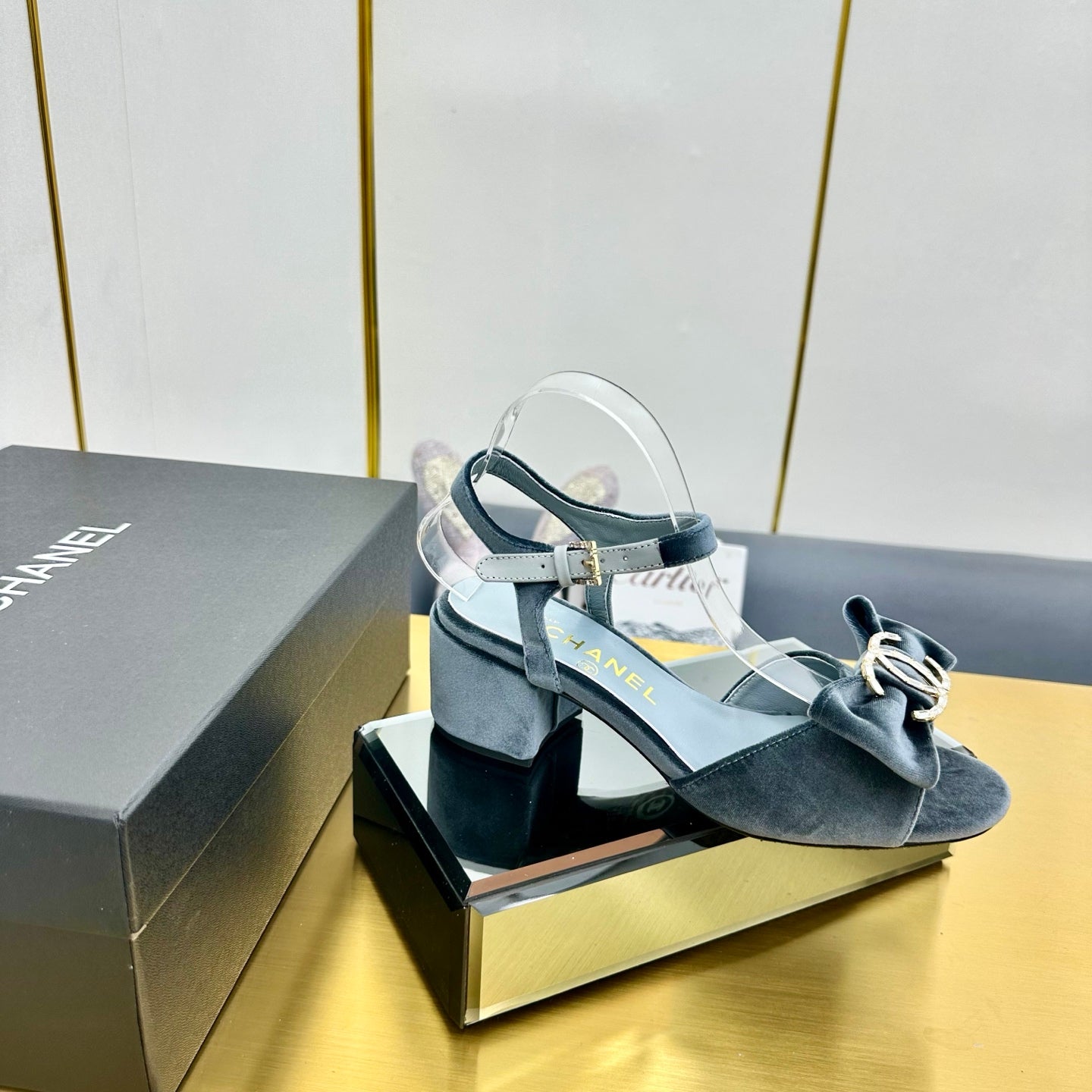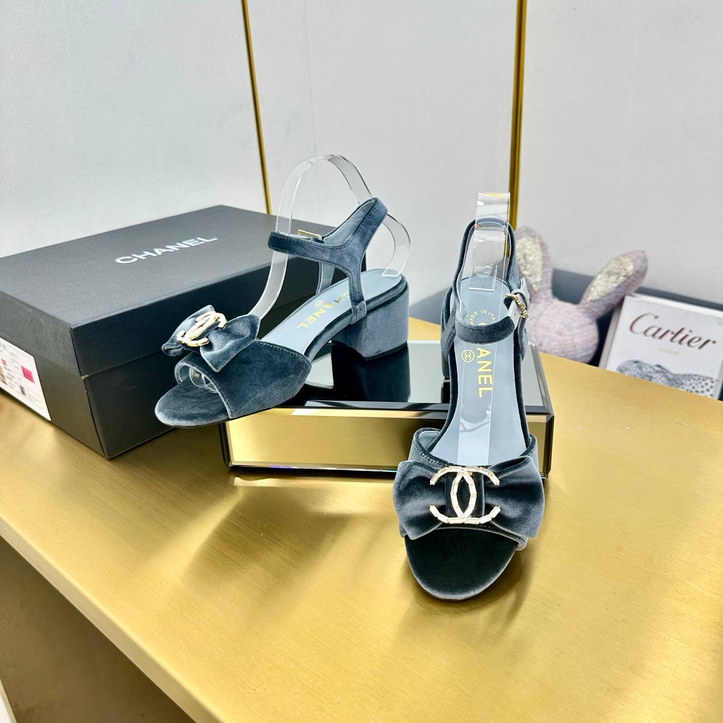 cc 25 bow sandal 50mm blue velvet 238482