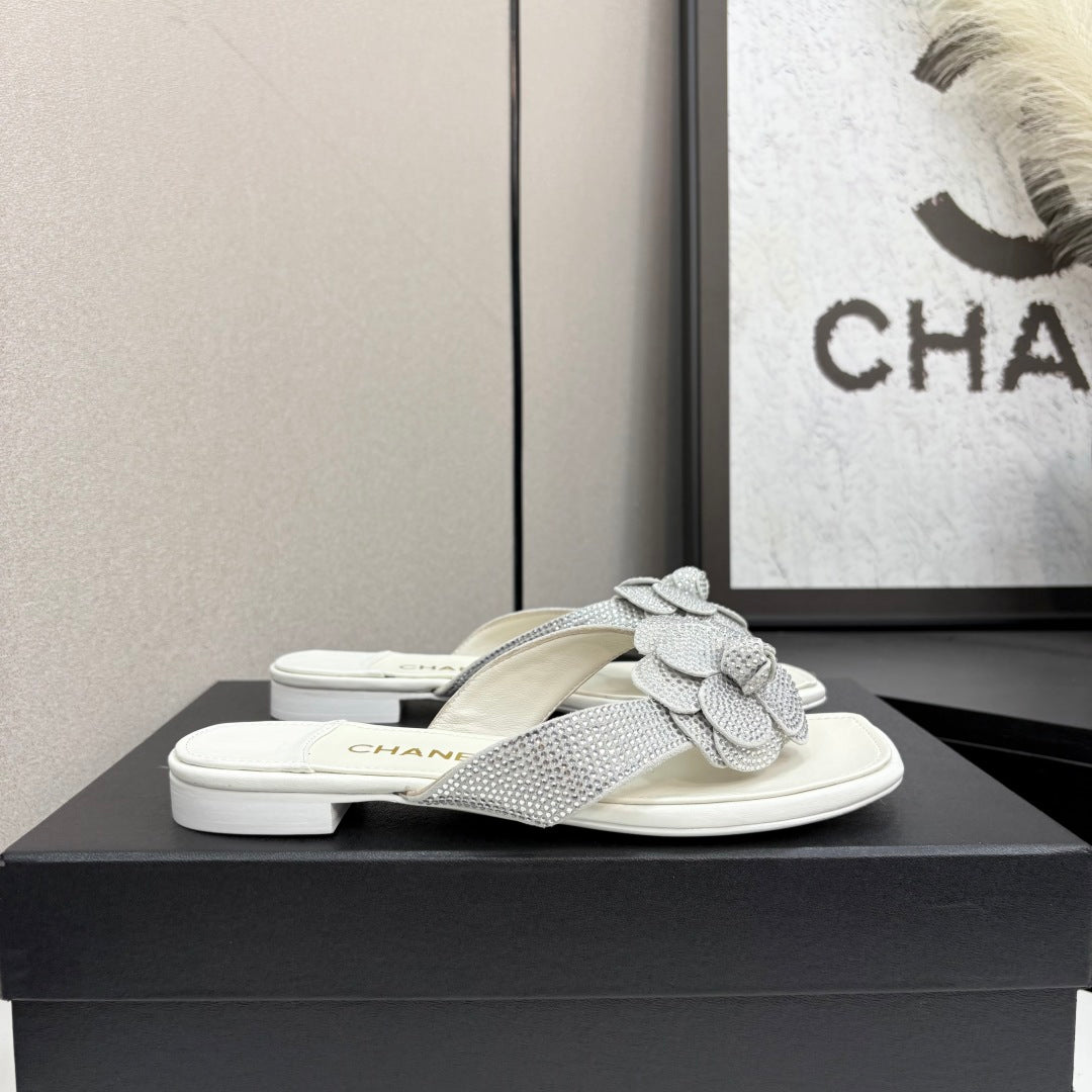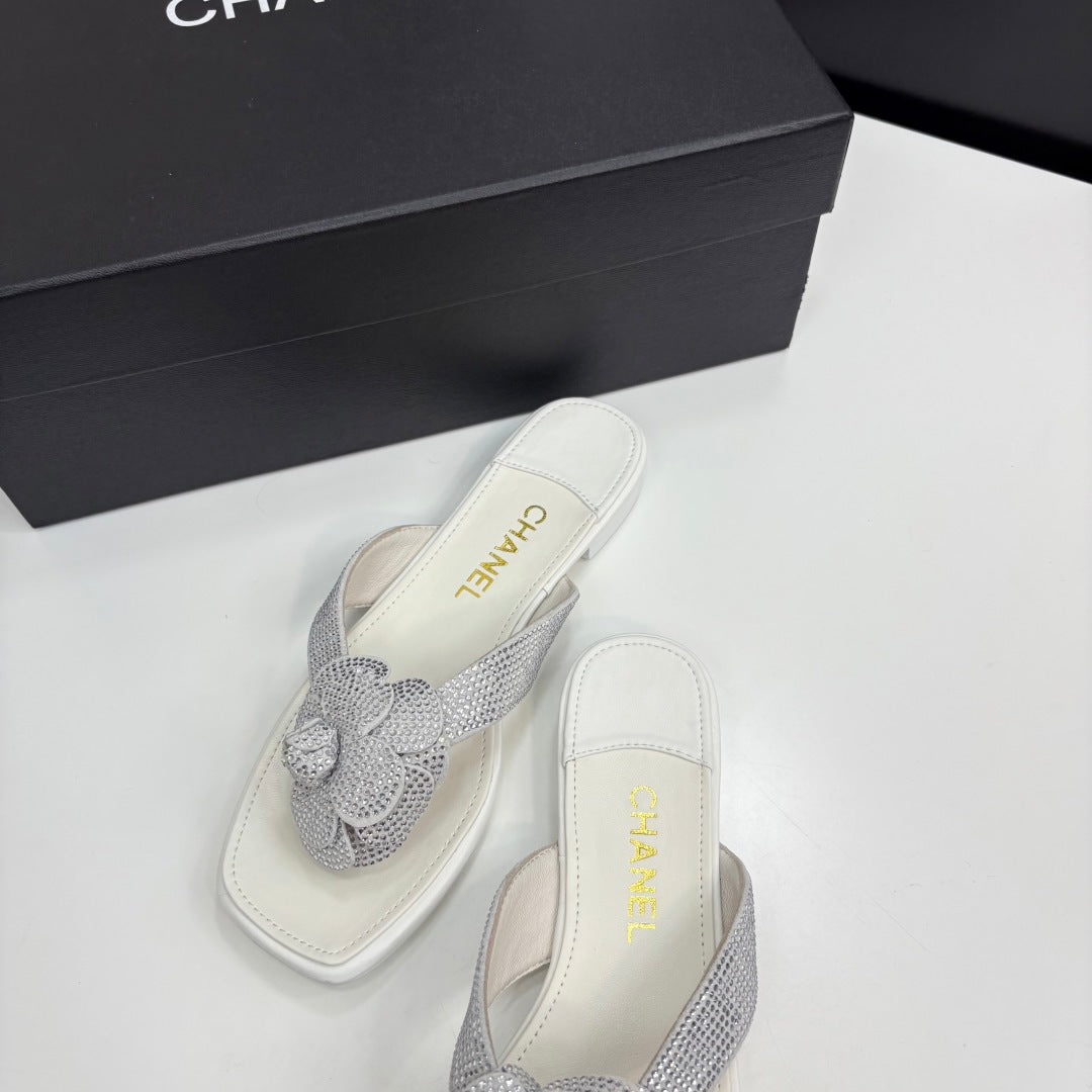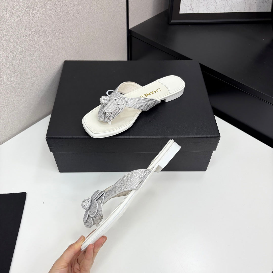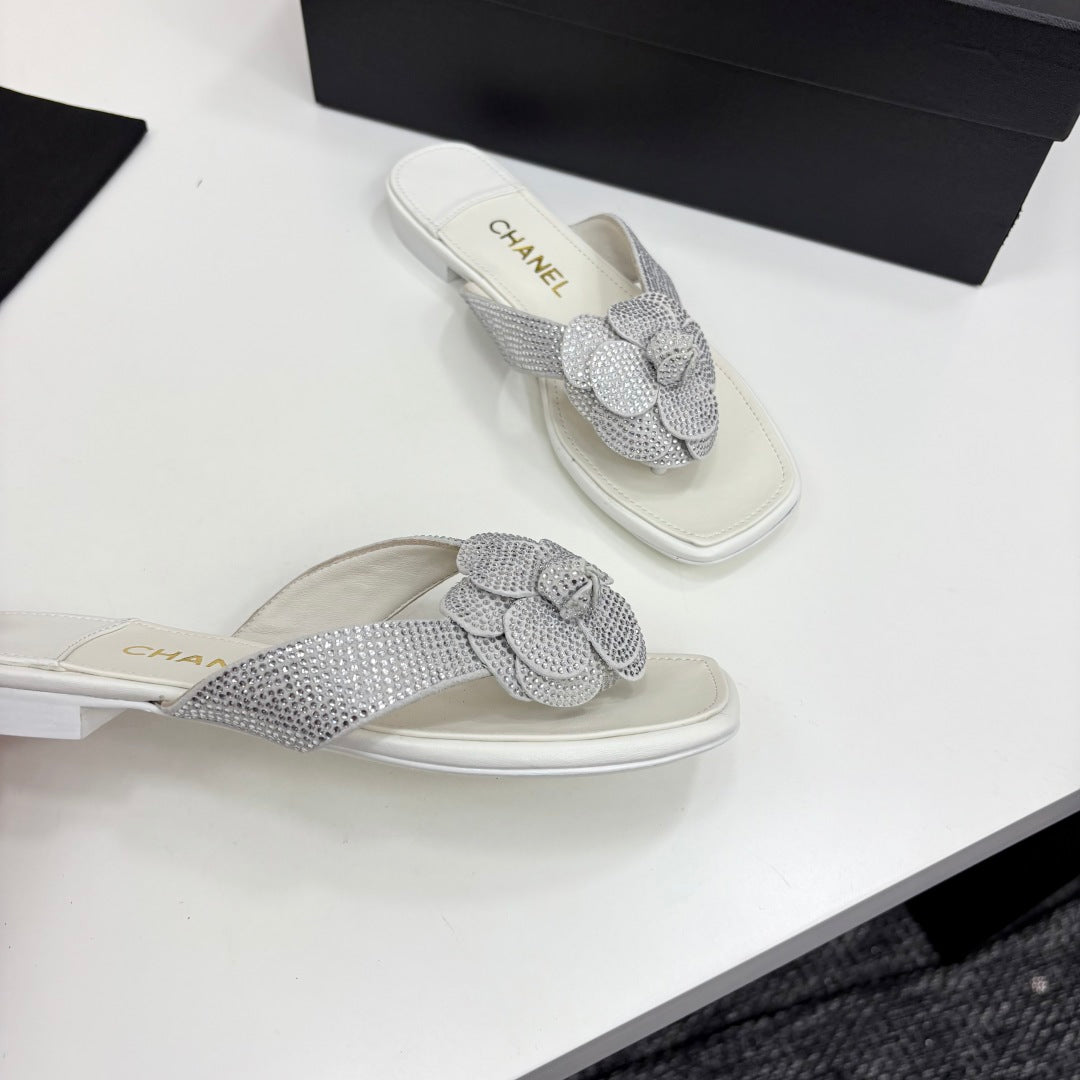 CC 25 Camellia Thong Sandals Silver Stone Grain And Sheepskin 368833
