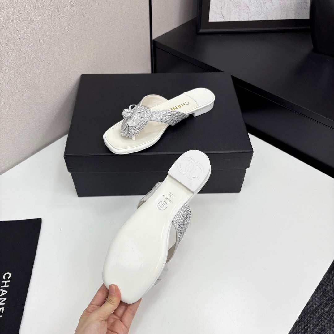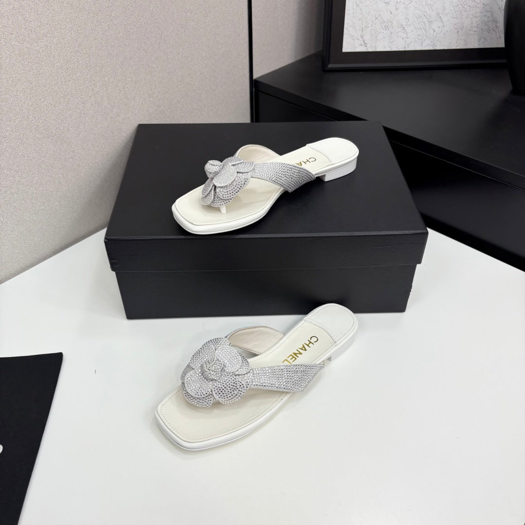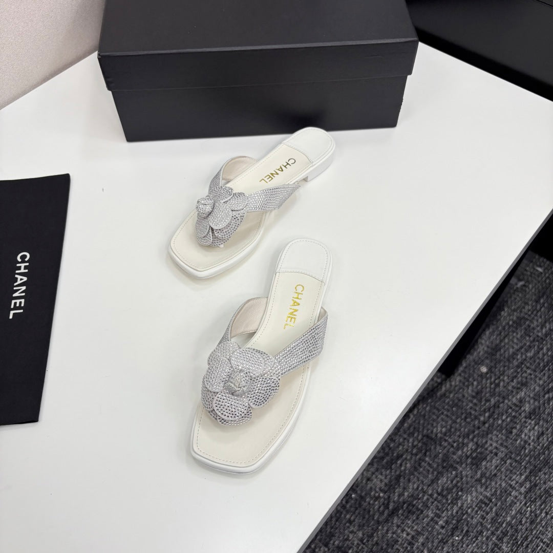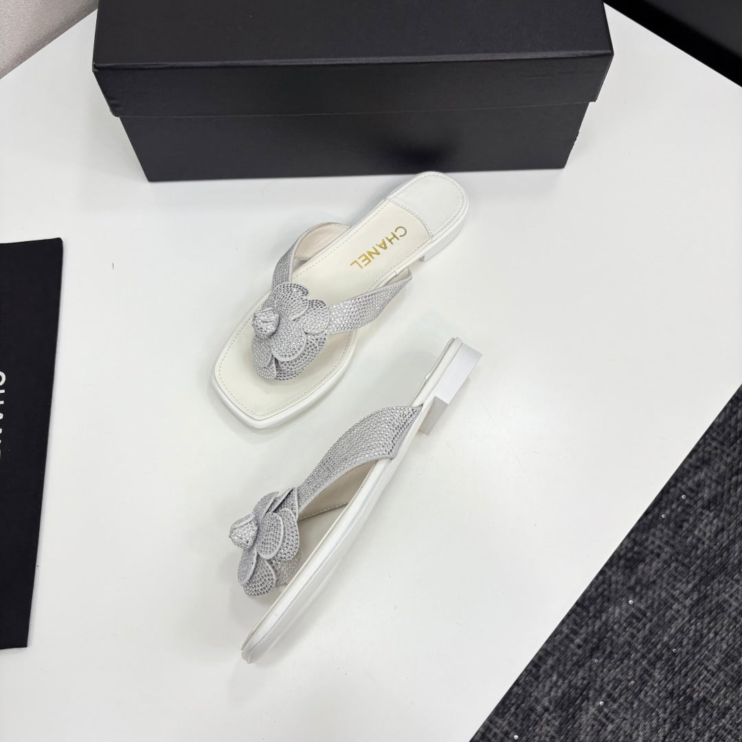 CC 25 Camellia Thong Sandals Silver Stone Grain And Sheepskin 368833