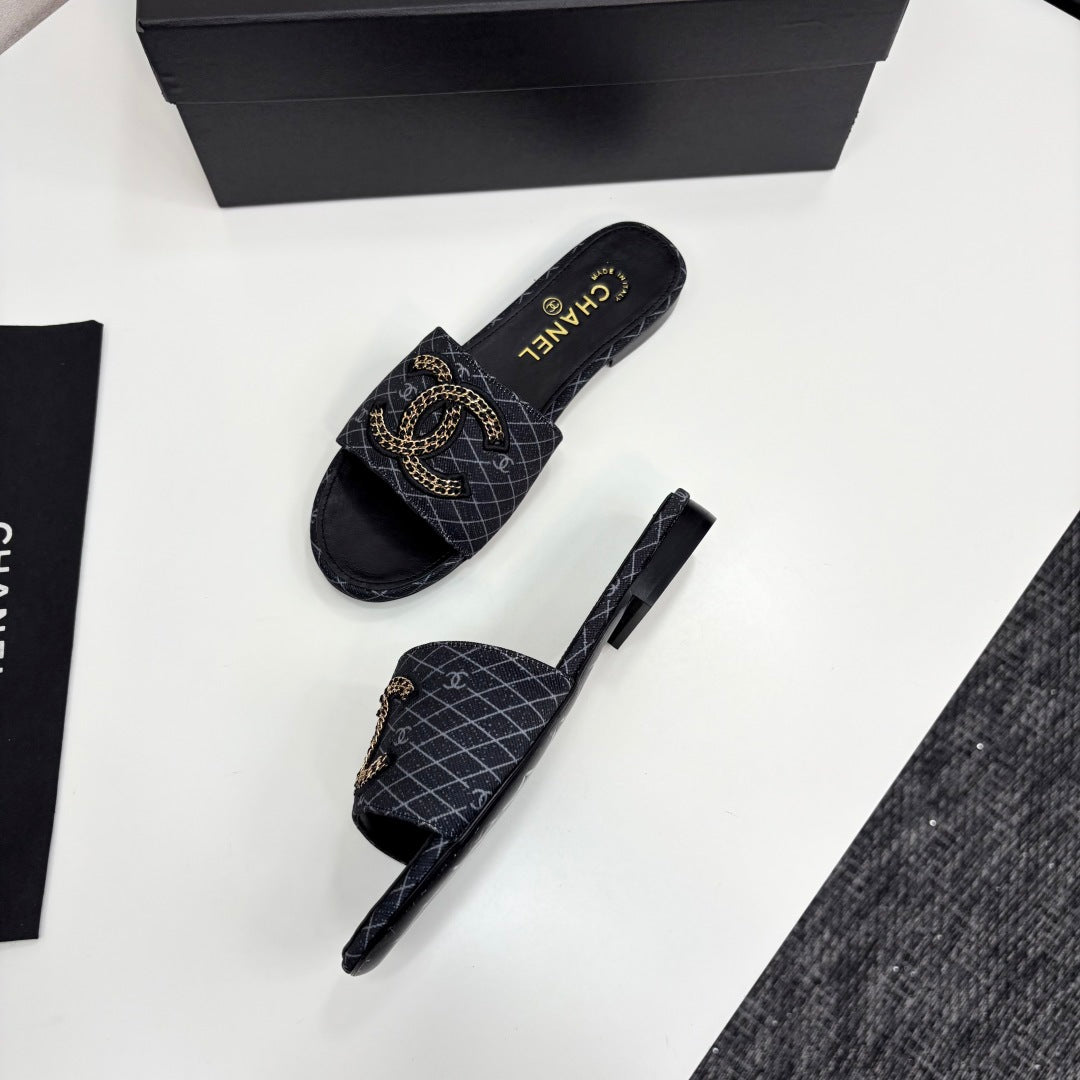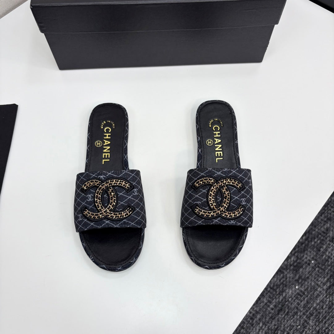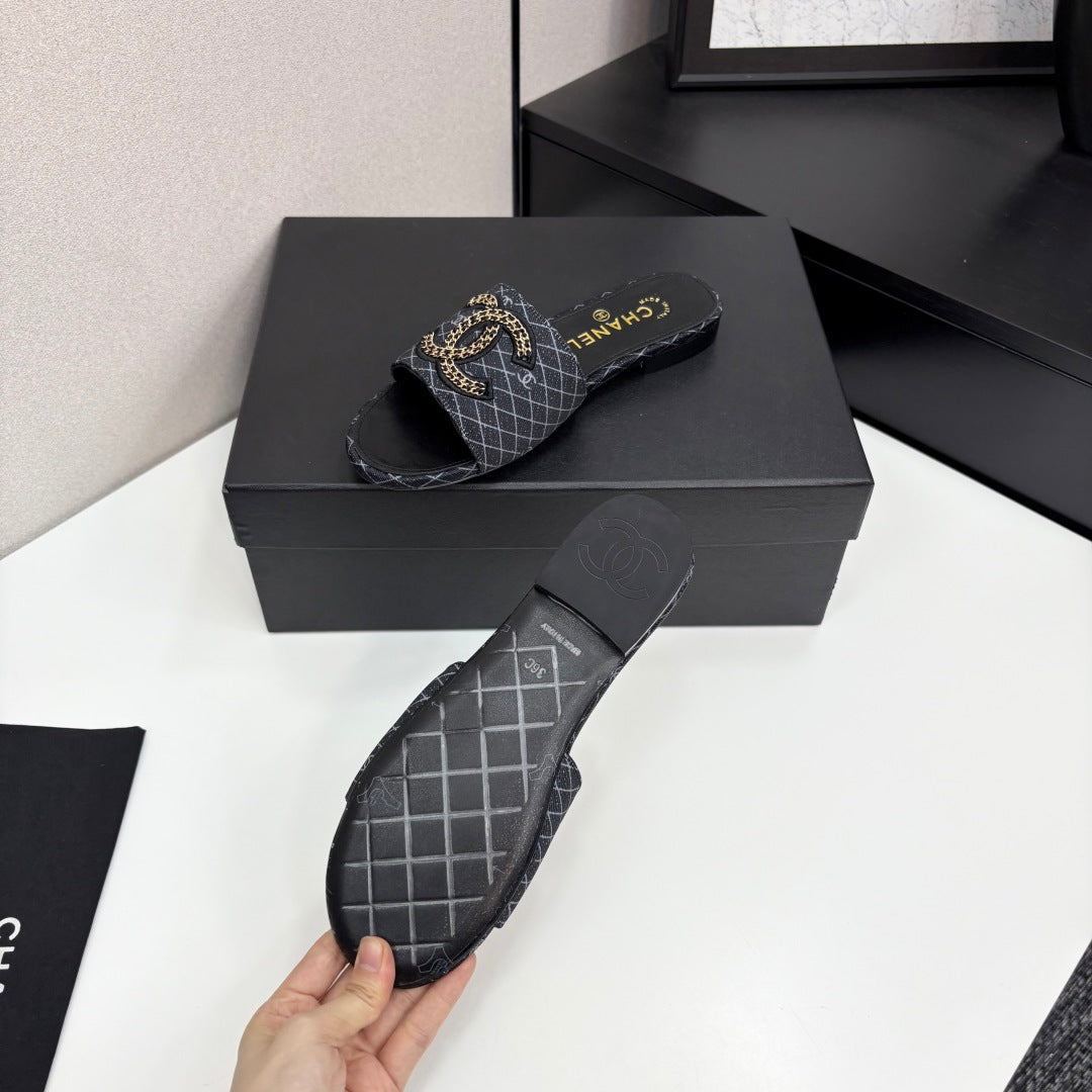 CC 25 Doubble Chain Embroidered Slippers Black Fabric 352495